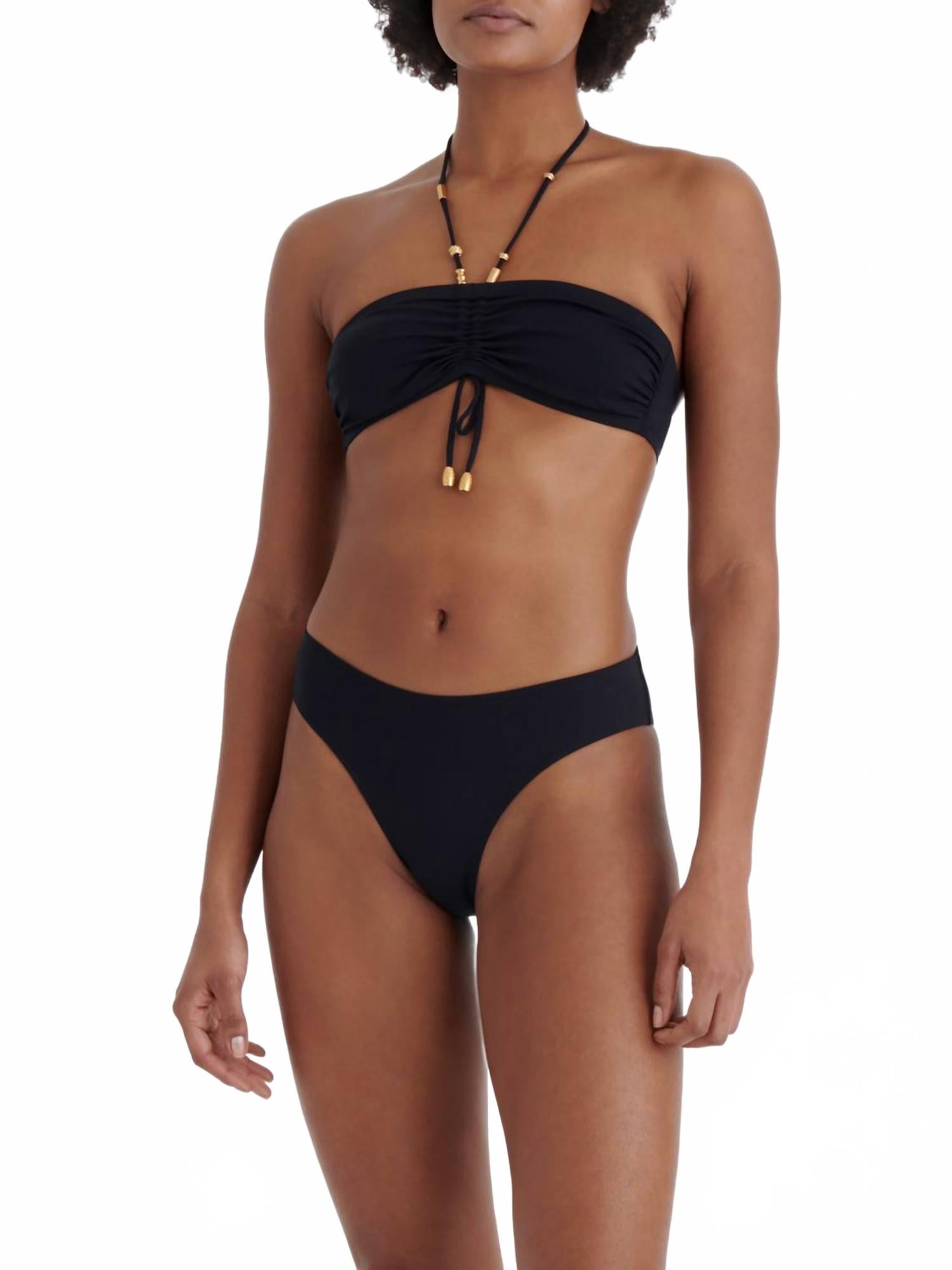 Представляем плавки Lava High Cut от ERES - гламурное дополнение к вашему летнему гардеробу. Эти плавки-бикини с высокой посадкой классического черного цвета созданы для того, чтобы подчеркнуть и сформировать любую фигуру благодаря изысканной завязке, украшенной бусинами. Изготовленные из 77% полиамида и 23% спандекса, они имеют минималистичный однотонный крой, воплощающий вневременную элегантность. Идеально подходящие для пляжного отдыха, эти плавки с низкой посадкой - обязательный элемент для создания шикарного пляжного образа.