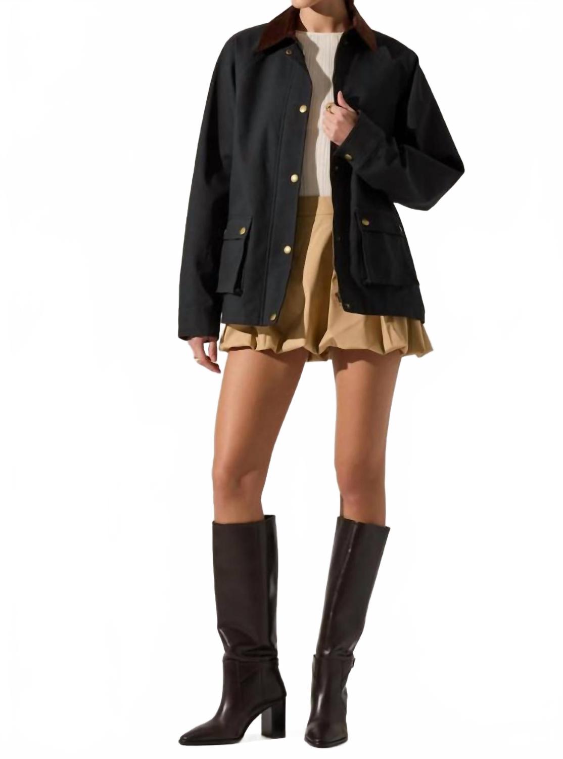 Милая, повседневная и удобная. Эта куртка - просто необходимая вещь. Представляем куртку Rylan от ASTR, однотонную темно-синюю повседневную куртку, идеально подходящую для осенних путешествий. С длинными рукавами и контрастным рисунком в виде амбарных ворот, эта минималистичная модель изготовлена ​​из 100% хлопка с подкладкой из хлопка, а также из 97% хлопка и 3% эластана в контрасте. Куртка имеет полностью подкладку, практичную застежку на кнопках и скрытую центральную молнию. С функциональными передними накладными карманами, куртка имеет свободный крой и предназначена только для химчистки.