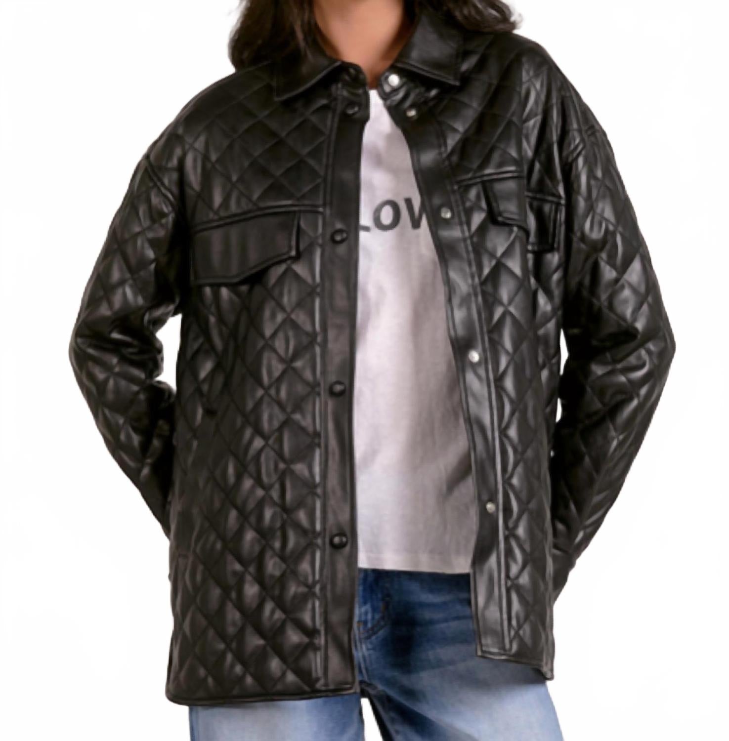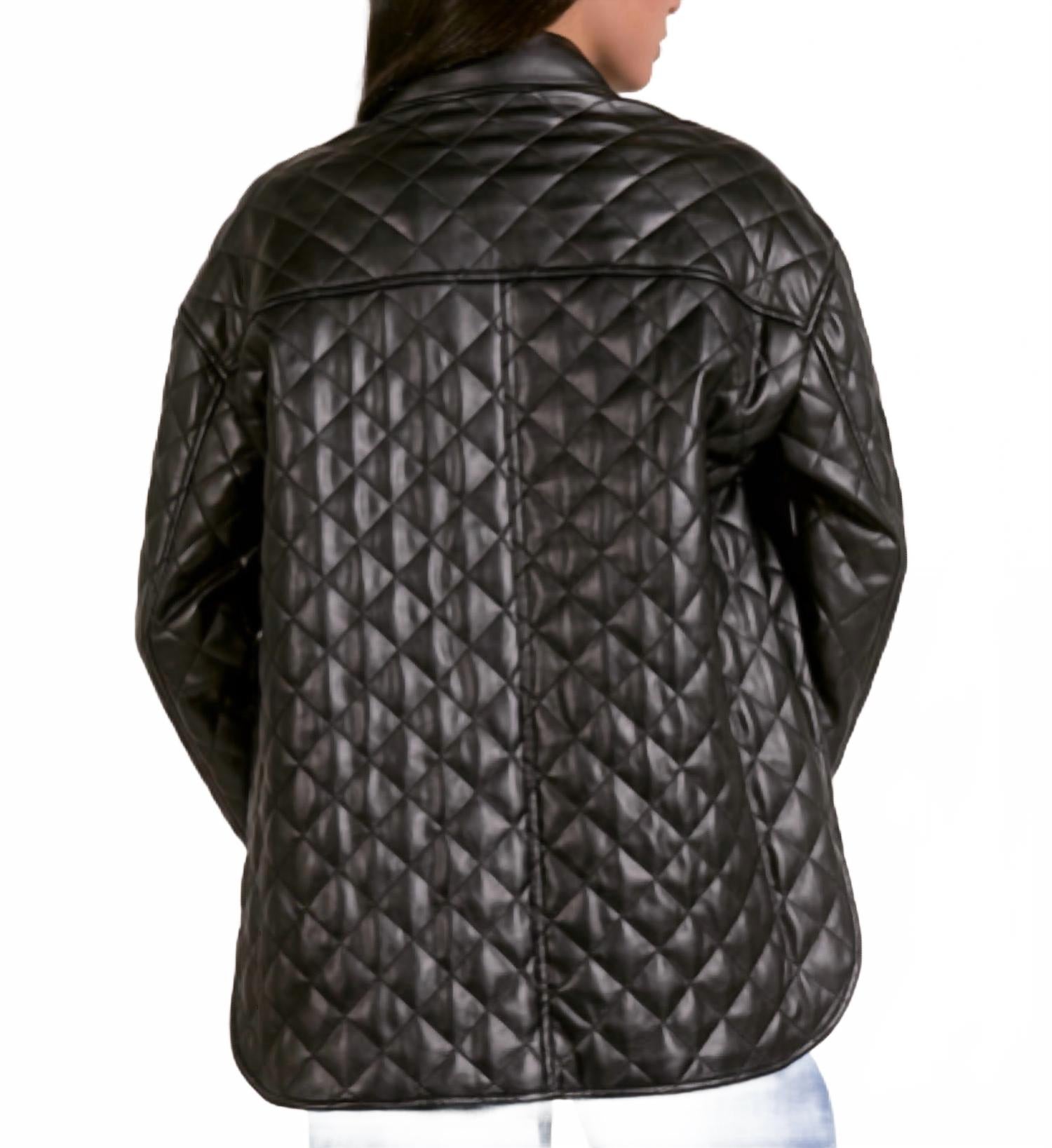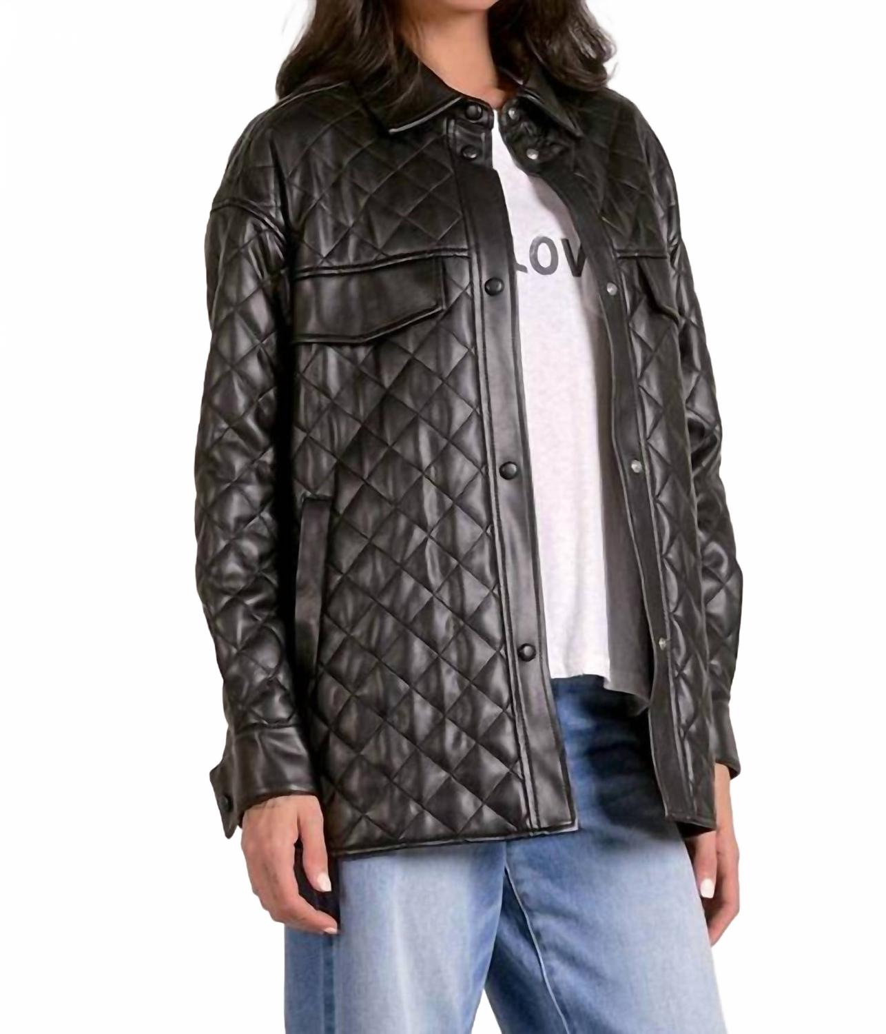 Пиджак настолько универсален, что его можно носить в офис или сочетать с джинсами для более повседневного образа. Представляем стеганый пиджак ELAN - эффектный вариант из черной искусственной кожи, созданный для того, чтобы придать вашему гардеробу смелый и дерзкий стиль. Этот пиджак с длинными рукавами имеет стеганый, фактурный узор и удлиненный силуэт, который заканчивается чуть ниже бедер для оптимальной защиты. Застежка на кнопках обеспечивает удобство надевания, а воротник добавляет классический штрих. Идеально подходит для минималистичного тренда и отлично подойдет для осени. Этот пиджак на подкладке имеет функциональные карманы для практичности.