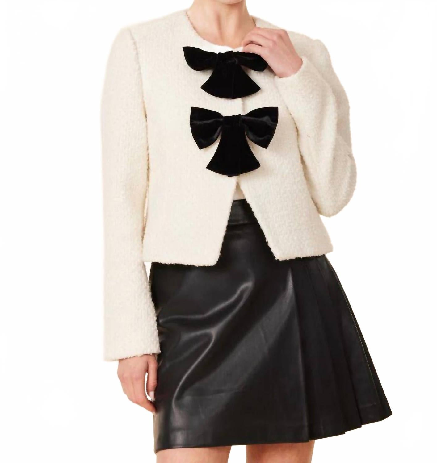 DOLCE CABO Блейзер из твида с бархатным бантом, белый