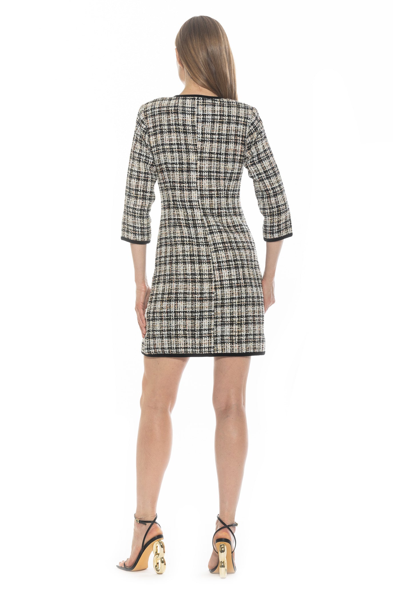 Погрузитесь в изысканность с нашим твидовым платьем Kara. Это мини-платье с круглым вырезом и рукавами три четверти, украшенное элегантными жемчужными пуговицами. Застежка на пуговицах дополнена контрастной окантовкой, придающей этому вневременному твидовому платью нотку роскоши.