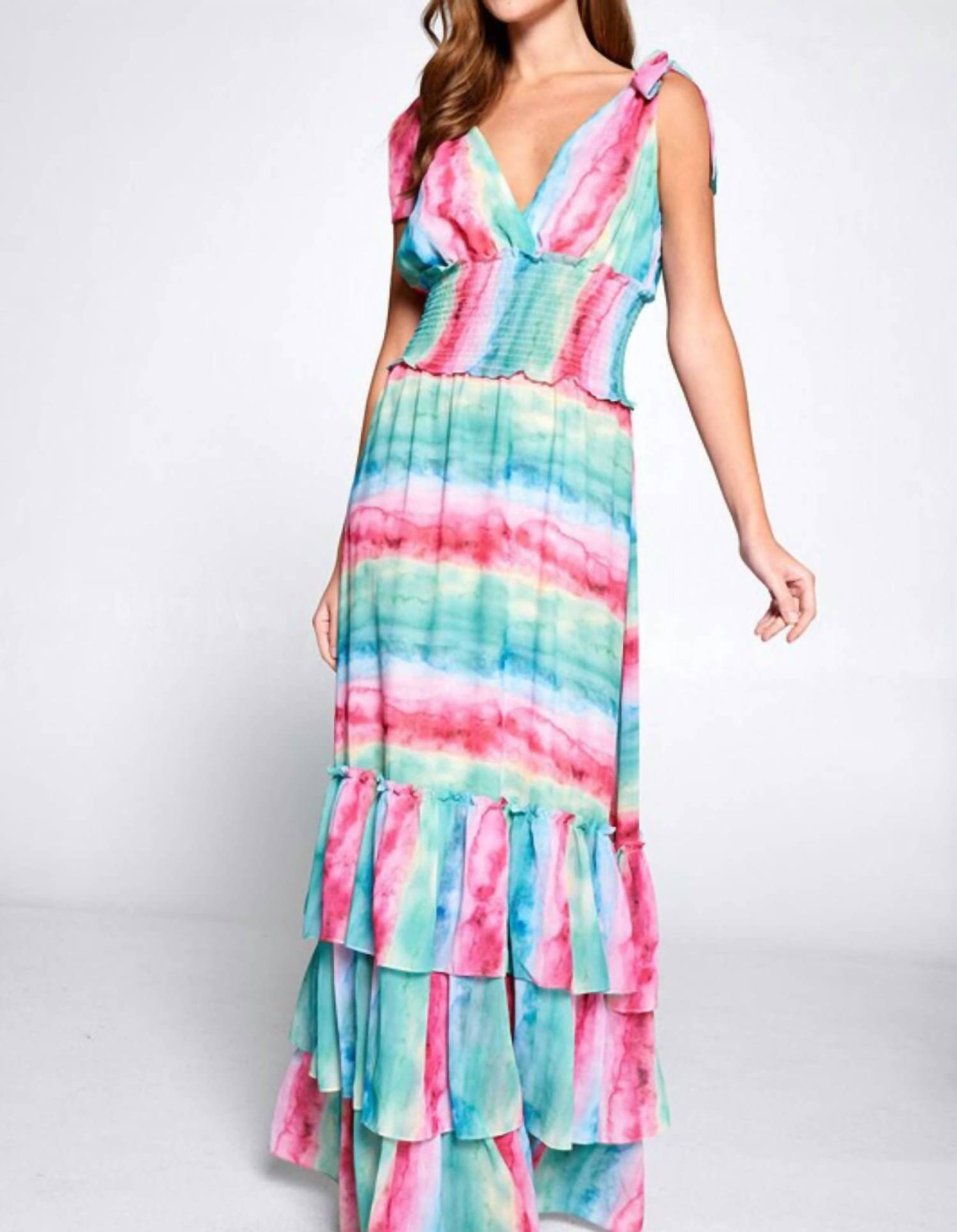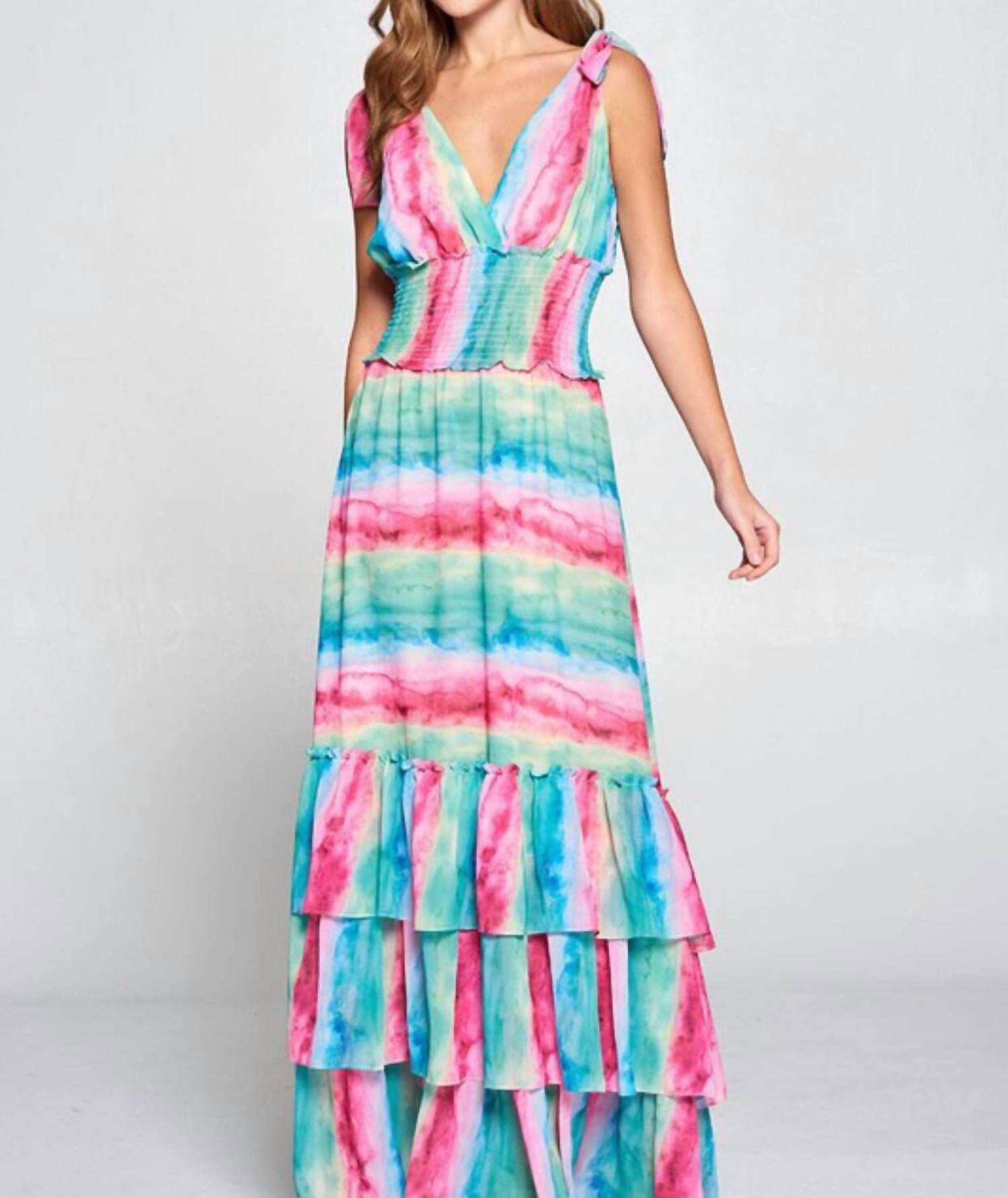 Дополните это макси-платье любимым эффектным ожерельем и сандалиями для создания идеального образа. Представляем красочное макси-платье с оборками от Strut & Bolt - очаровательное дополнение к вашему гардеробу благодаря дизайну без рукавов и регулируемым бретелям. Изготовленное из 100% полиэстера, это многоцветное макси-платье А-силуэта имеет глубокий V-образный вырез и многоярусную юбку с оборками, элегантно ниспадающую до пола. Яркий полосатый узор добавляет нотку гламура, делая его идеальным для любого весеннего или летнего случая. Застежка - завязки. Доступно в размерах S, M, L и соответствует стандартным размерам.