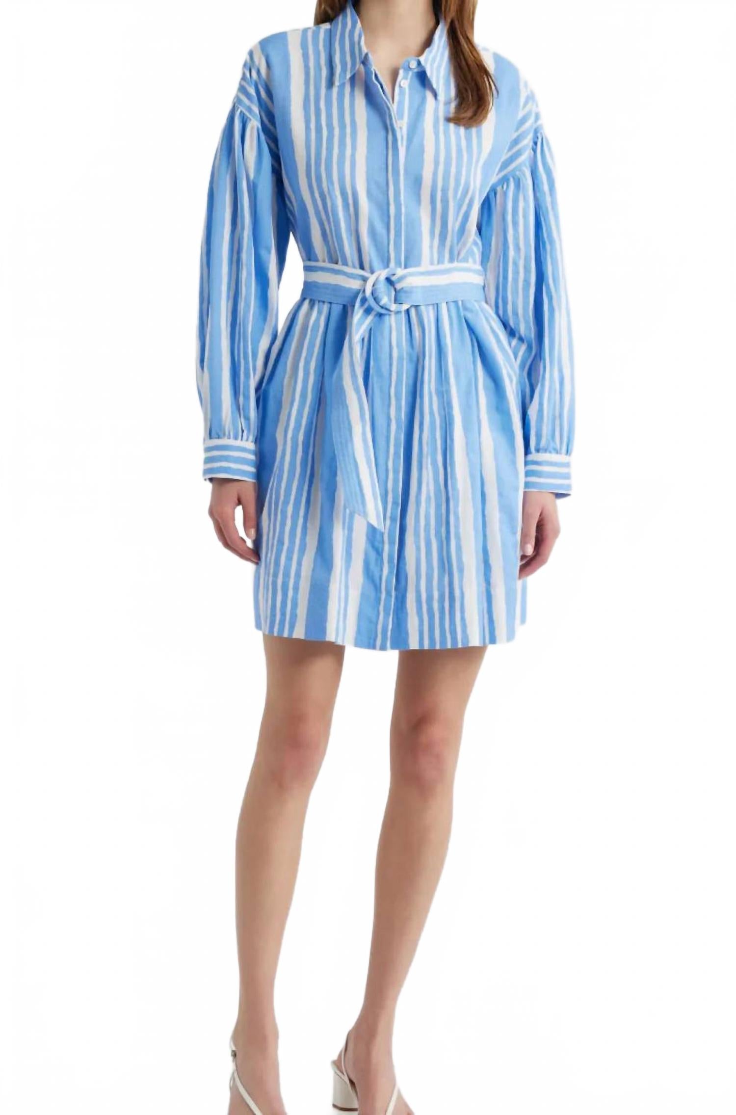 Идеальное мини-платье для теплых месяцев. Встречайте весну с мини-платьем Tiana от Cleobella - стильным дополнением к вашему гардеробу для праздничных вечеринок. Это минималистичное платье-рубашка в синем цвете Vecchio Stripe Blue имеет аккуратный воротник и длинные рукава, создавая классический, изысканный образ. Застежка на пуговицы обеспечивает удобство ношения, сохраняя при этом элегантный вид. Обратите внимание: инструкции по стирке и уходу не прилагаются.