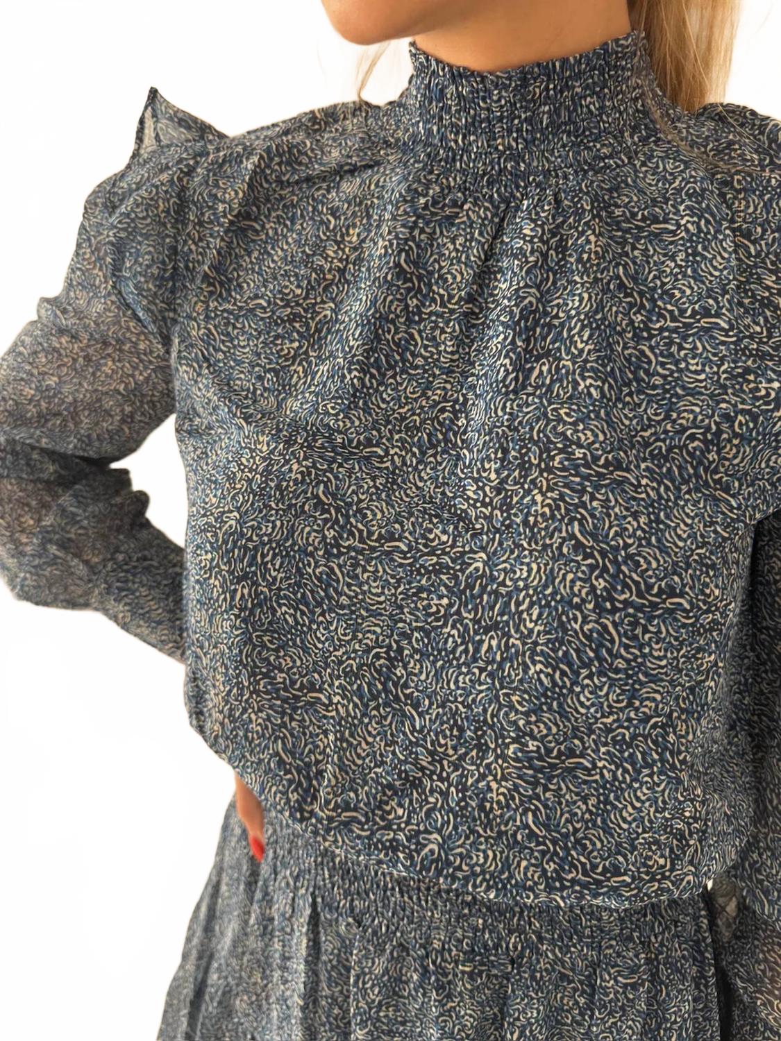 Идеальное мини-платье для теплых месяцев. Мини-платье Juliette от Sincerely Ours - элегантный выбор для любого осеннего случая. Оно сшито из легкой тканой ткани с очаровательным цветочным узором «Звездная ночь». Платье с длинными прозрачными рукавами и эффектным V-образным вырезом имеет эластичную талию и подкладку для комфорта и стиля. Это платье А-силуэта с воротником-стойкой идеально подходит для вечерних мероприятий, воплощая в себе нотку моды 90-х. Застежка - пуговицы.