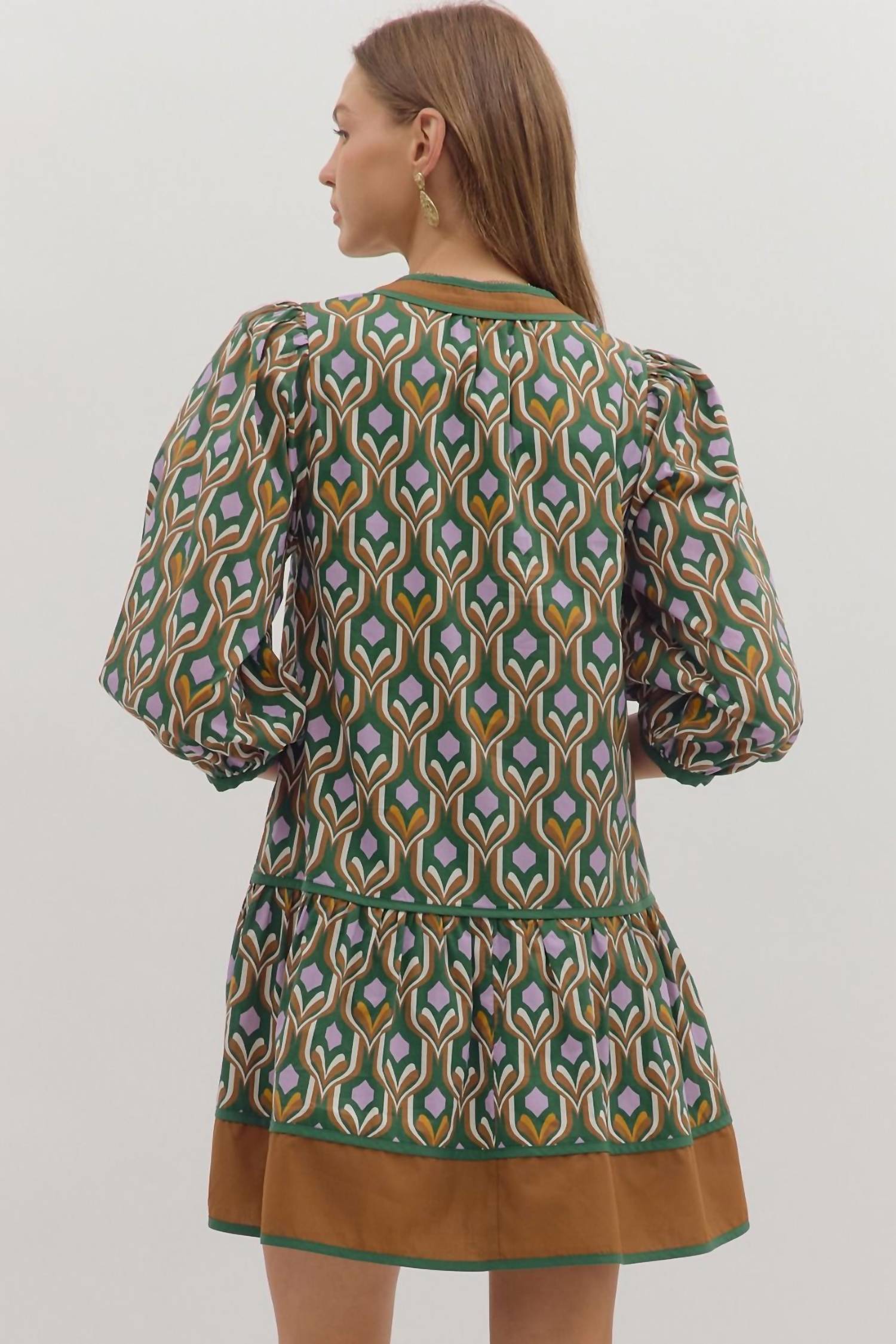 Идеальное мини-платье для теплых месяцев. Откройте для себя мини-платье Entro Peacock в стиле бохо-шик для весеннего отдыха в потрясающем темно-зеленом цвете. Это женское платье имеет рукава три четверти и игривый оборчатый подол с геометрическим узором, дополненный контрастной окантовкой и удобным боковым карманом. Изготовленное полностью из легкого, непрозрачного хлопка, платье обеспечивает комфортную посадку и застегивается на резинку. Идеальное платье на подкладке, с V-образным вырезом и прямым силуэтом, идеально подходящим для сезона отпусков. Рост модели 178 см, размер S.