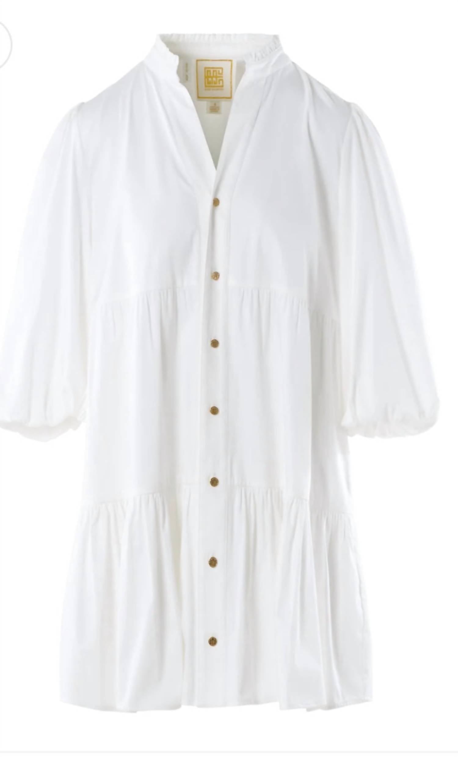 Идеальное мини-платье для теплых месяцев. Ощутите непринужденное очарование мини-платья Sadie от Emily McCarthy, созданного для легкой и элегантной нотки. Эта вневременная модель с рукавами три четверти выполнена из 100% хлопкового поплина со 100% полиэстеровой подкладкой. Платье украшено фирменной золотой застежкой на пуговицы и заниженной линией талии, создавая изысканный образ для женщин, предпочитающих минималистичные весенние тренды. Уход: машинная стирка в деликатном режиме с мягким моющим средством, сушка на воздухе для сохранения формы и цвета.