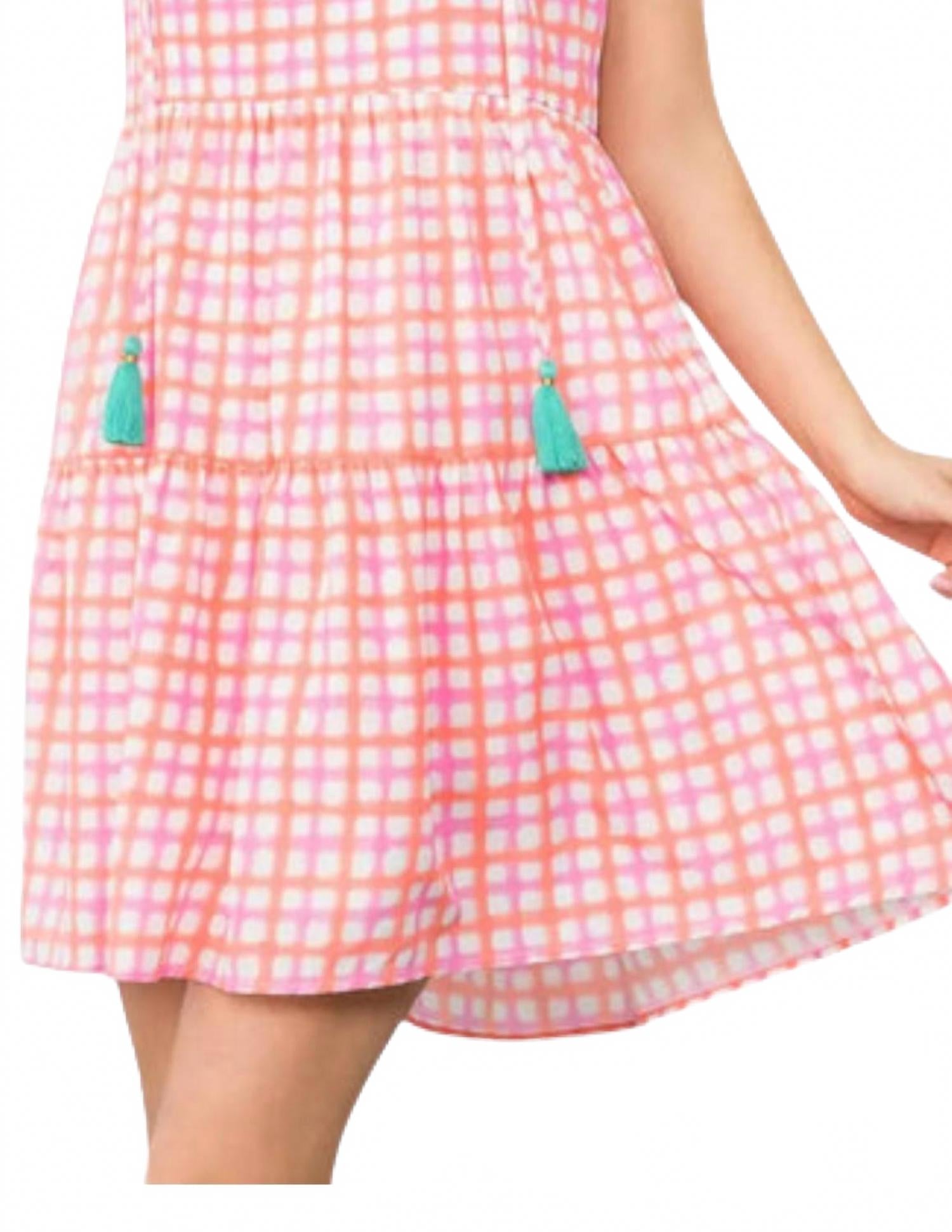 Идеальное мини-платье для теплых месяцев. Представляем мини-платье Gigi от THML - очаровательный выбор для весенней вечеринки. Это розовое мини-платье в клетку имеет короткие рукава и многослойный А-образный силуэт, украшенный контрастными кисточками. Изготовлено из нейлоновой смеси, содержащей 96% нейлона и 4% спандекса для комфортной посадки. Застежка - надевается через голову. Для сохранения яркого цвета рекомендуется ручная стирка и сушка на воздухе.