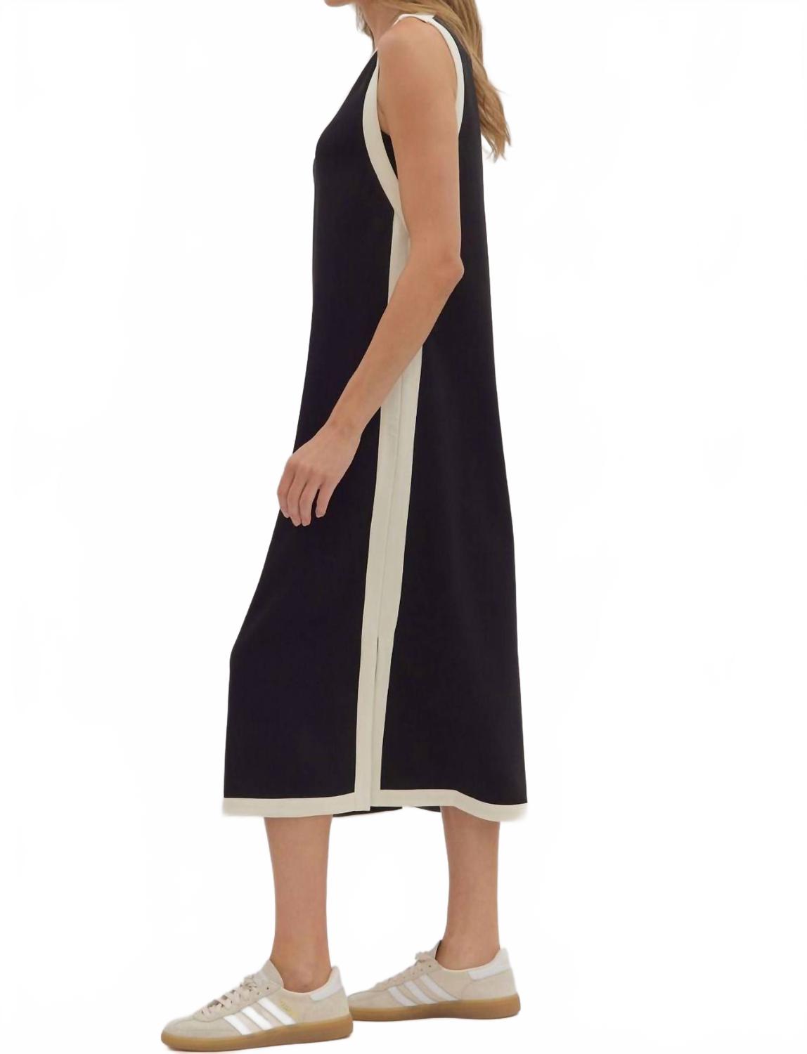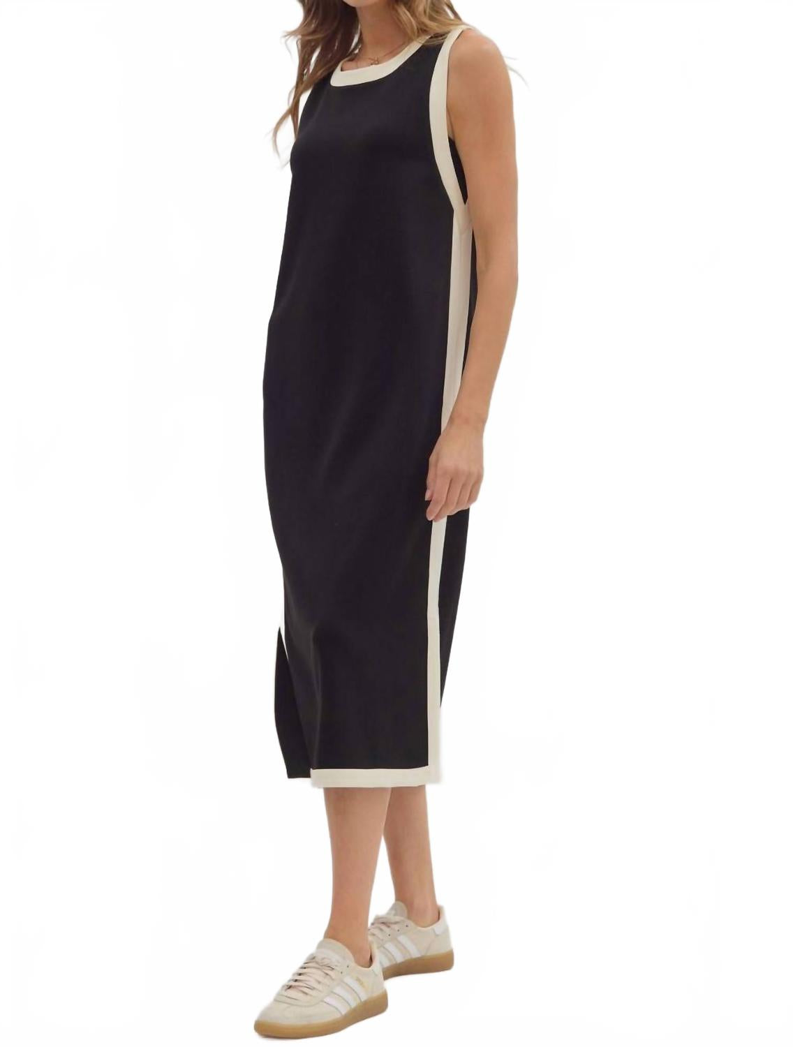Платье идеальной длины действительно существует. Окунитесь в летнюю элегантность с минималистичным платьем миди Kate от Entro - шикарным платьем без рукавов, созданным для непринужденного стиля. Изготовленное из комфортной хлопковой смеси, состоящей из 55% вискозы, 40% хлопка и 5% спандекса, это платье имеет однотонный черный силуэт с игривой контрастной отделкой для дополнительной детали. Удобный в носке, дизайн включает в себя прямой силуэт с кокетливым боковым разрезом и вырезом-лодочкой, дополненный застежкой-молнией. Идеально подходит для званого ужина или повседневных прогулок, это платье легко стирается в машине.
