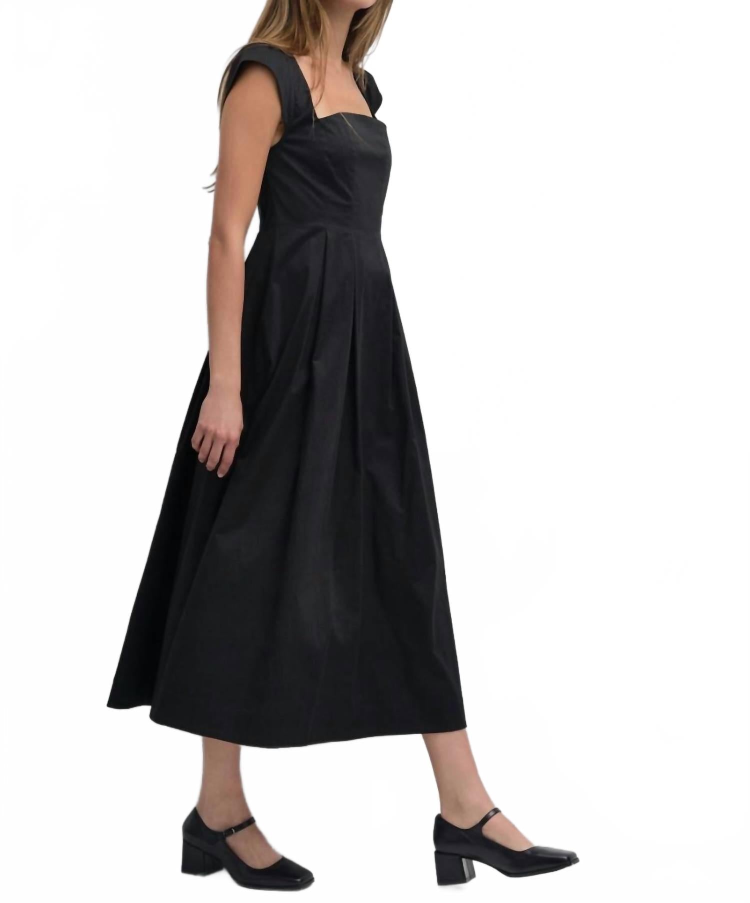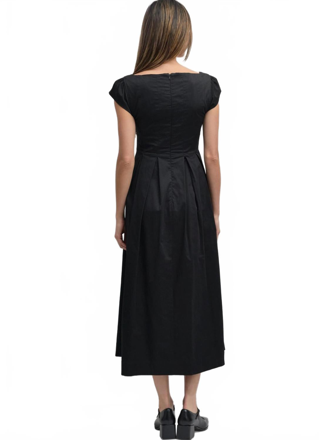 Платье идеальной длины действительно существует. Ощутите вневременную элегантность с платьем-миди Roche от MOD REF, отличающимся шикарными короткими рукавами и привлекательным А-образным силуэтом. Изготовленное из 100% хлопка, это однотонное черное платье имеет удобную застежку-молнию для легкого надевания. Идеально подходит для отдыха или летних мероприятий, его квадратный вырез и плиссированная талия придают классическому шарму современный вид. Уход: ручная стирка и сушка на воздухе.