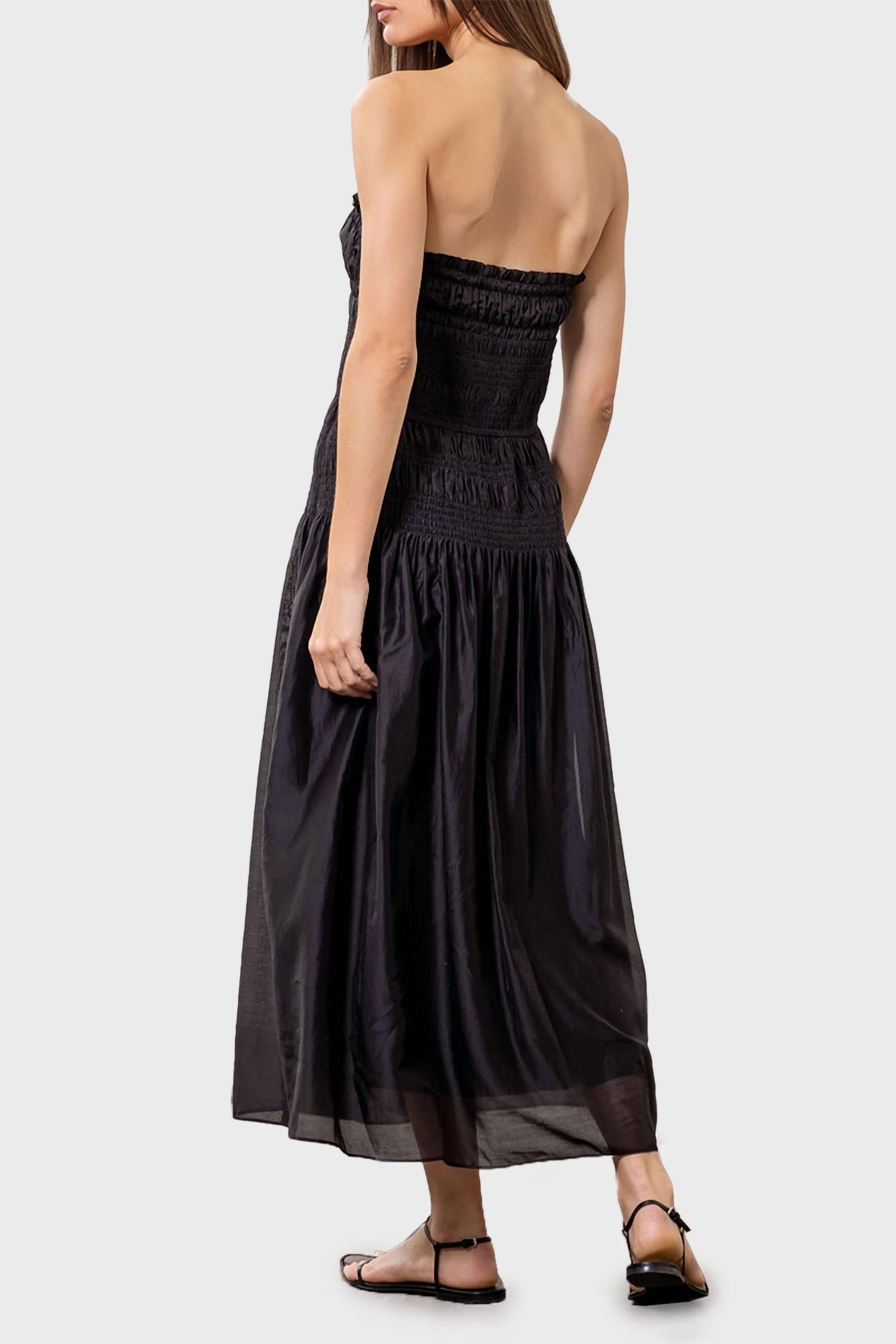 Обновите свой летний гардероб с помощью плиссированного платья-миди без бретелей от MOON RIVER, созданного для минималистичной элегантности. Это однотонное черное платье А-силуэта имеет открытый вырез без бретелей и стильную застежку-молнию для удобства надевания. Идеально подходящее для праздничной вечеринки, это платье украшено сборками и поясом на талии, позволяющим регулировать силуэт.