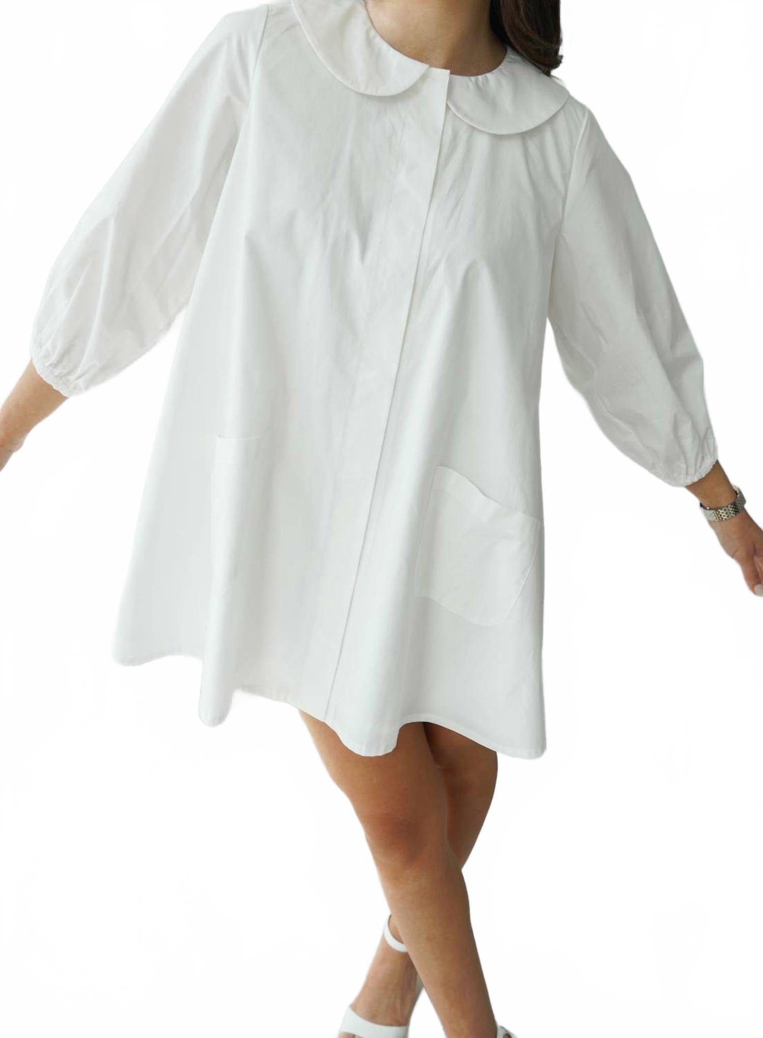 Представляем мини-платье Oakley от MABLE - шикарное женское платье, идеально подходящее для летней коктейльной вечеринки. Это элегантное платье с рукавами три четверти, слегка эластичными манжетами и воротником «Питер Пэн» из поплина воплощает минималистичный, свободный А-образный силуэт с накладными карманами спереди. Изготовлено из 100% вискозы (как основной ткани, так и подкладки), имеет скрытую застежку на пуговицах спереди и выполнено в классическом кремовом оттенке. Уход за этим изысканным платьем прост - достаточно ручной стирки. Размер соответствует стандартному, а свободный крой обеспечивает максимальный комфорт.