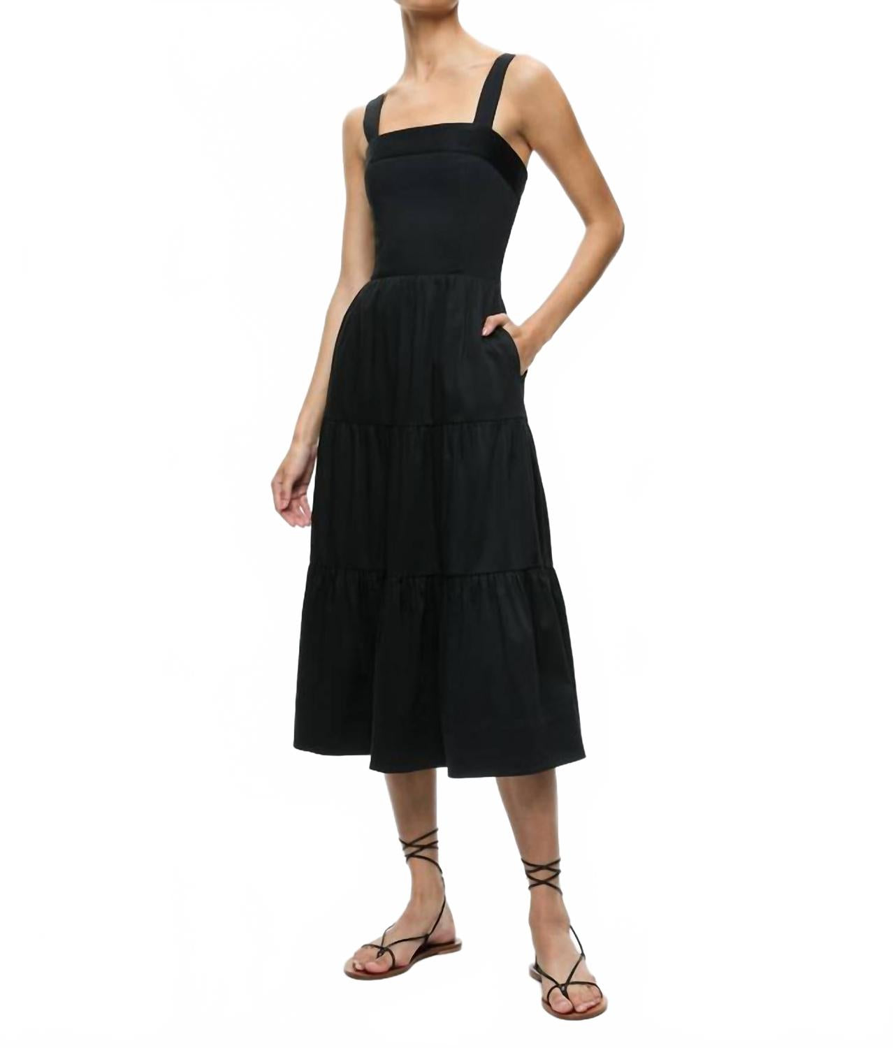 Платье миди настолько универсально, что возможности его ношения безграничны. Ощутите непринужденную элегантность с платьем миди Saige от alice + olivia - стильным и изысканным вариантом в классическом черном цвете. Эта модель без рукавов с прямым вырезом и шнуровкой на спине идеально дополняет приталенный силуэт, делая его идеальным минималистичным вариантом для вашего следующего отпуска. Изготовленное из хлопковой смеси для комфорта, платье имеет длину миди 46,5 дюймов от плеча и застежку-молнию сзади. Для ухода за этой универсальной моделью рекомендуется химчистка, что продлит срок ее службы. Модель ростом 176,5 см и носит размер 2.