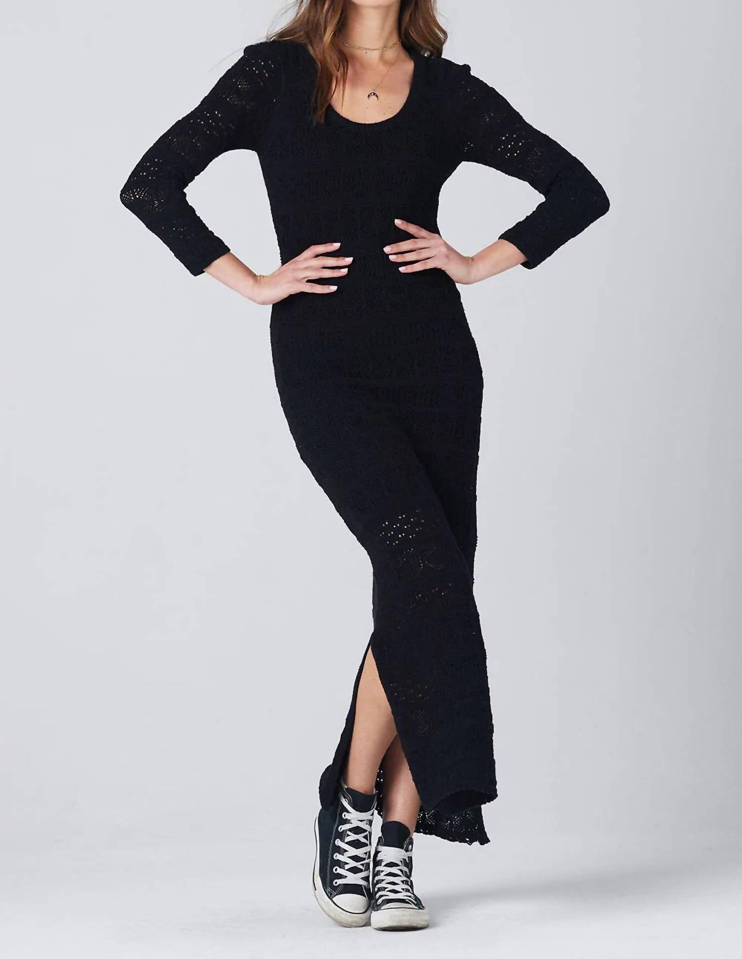Просто добавьте шлепанцы или мюли, и вы готовы. Откройте для себя платье-миди Ronni от Saltwater LUXE - элегантное черное облегающее платье-свитер, идеально подходящее для любого стильного образа. Изготовленное из импортной трикотажной ткани, это платье с длинными рукавами имеет привлекательный вырез-лодочку и удобно надевается благодаря застежке-молнии. Длина изделия - миди. Уход - ручная стирка и сушка на воздухе для сохранения качества.