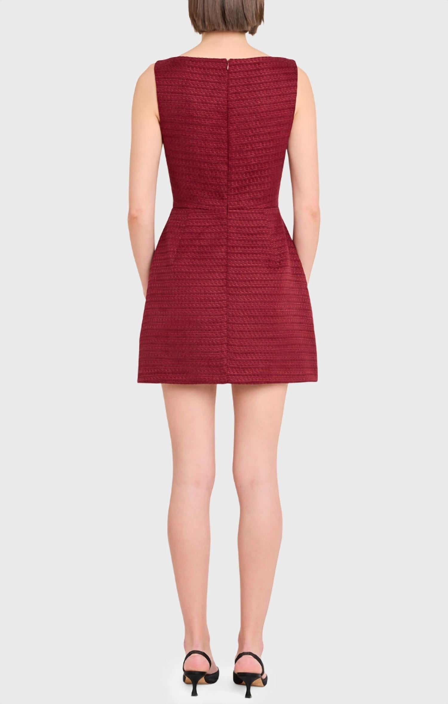 Ощутите суть сдержанной роскоши с мини-платьем Banco от Amanda Uprichard - эффектным нарядом насыщенного рыжевато-коричневого цвета, идеально подходящим для осенних коктейльных вечеринок. Это платье без рукавов имеет вырез-лодочку и А-образный силуэт с рельефными швами на лифе, дополненный мягко закругленной юбкой и накладными карманами для элегантного завершения образа. Изготовленное из 100% полиэстера с подкладкой из полиэстера и эластана, это платье полностью на подкладке и имеет потайную застежку-молнию по центру спины для безупречной посадки.