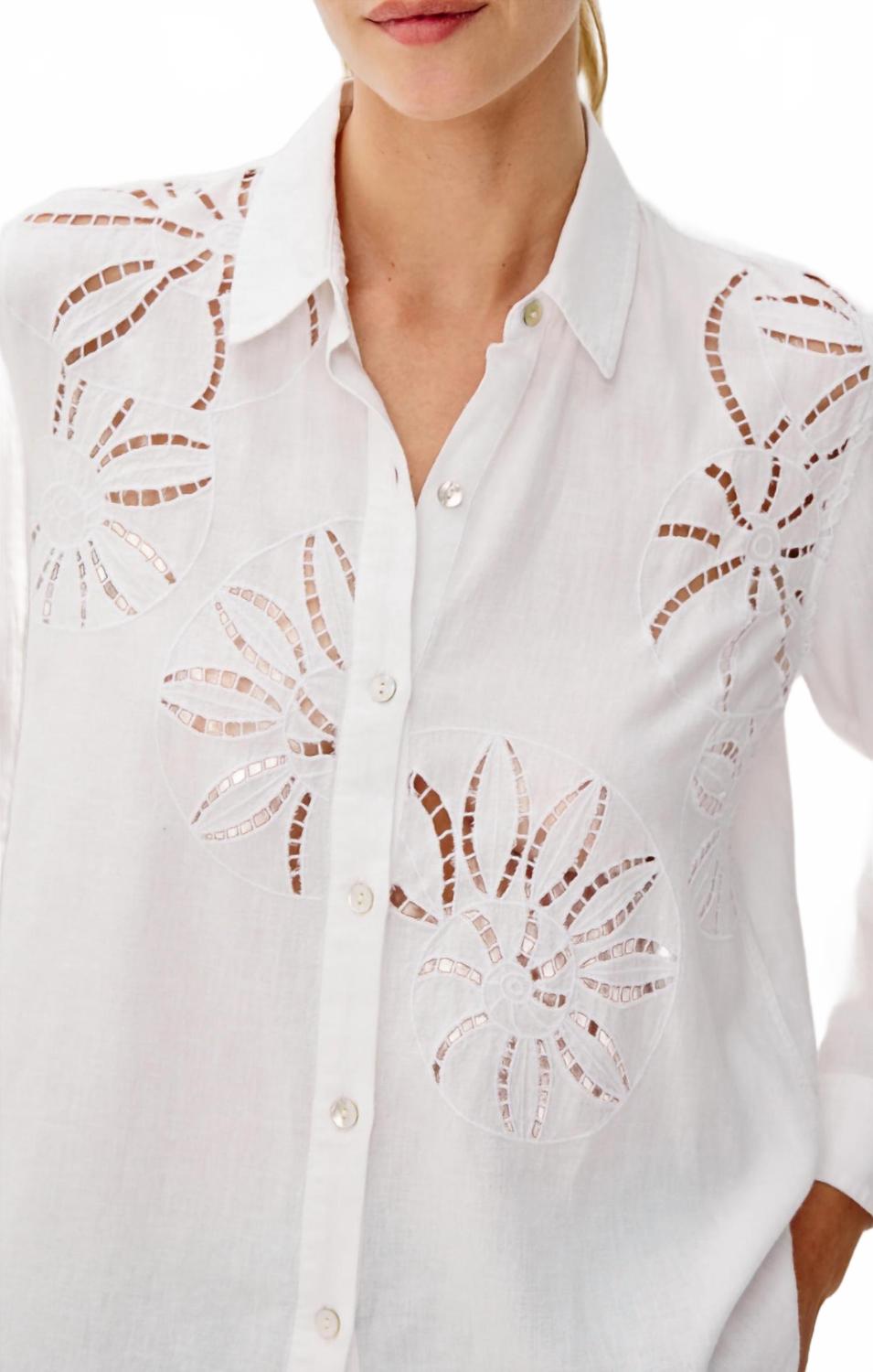 Идеально скроенная и приятная на ощупь. Обновите свой гардероб рубашкой Samar от Rails - стильным выбором для любого случая. Эта женская рубашка на пуговицах имеет длинные рукава и изготовлена ​​из 100% легкого и дышащего льна, обеспечивая комфорт и элегантность. Классические детали рубашки, дополненные шикарным узором в виде ракушек, добавляют текстуру и изюминку. Рубашка имеет функциональную застежку на пуговицах, идеально подходящую для разнообразных образов: как в расстегнутом виде поверх купальника, так и в застегнутом для элегантного званого ужина.