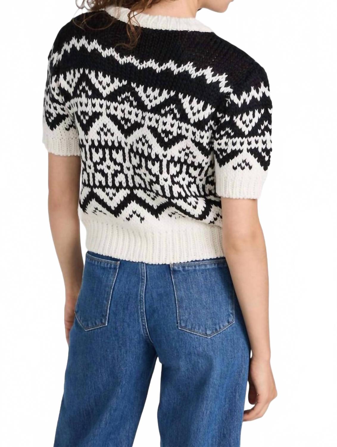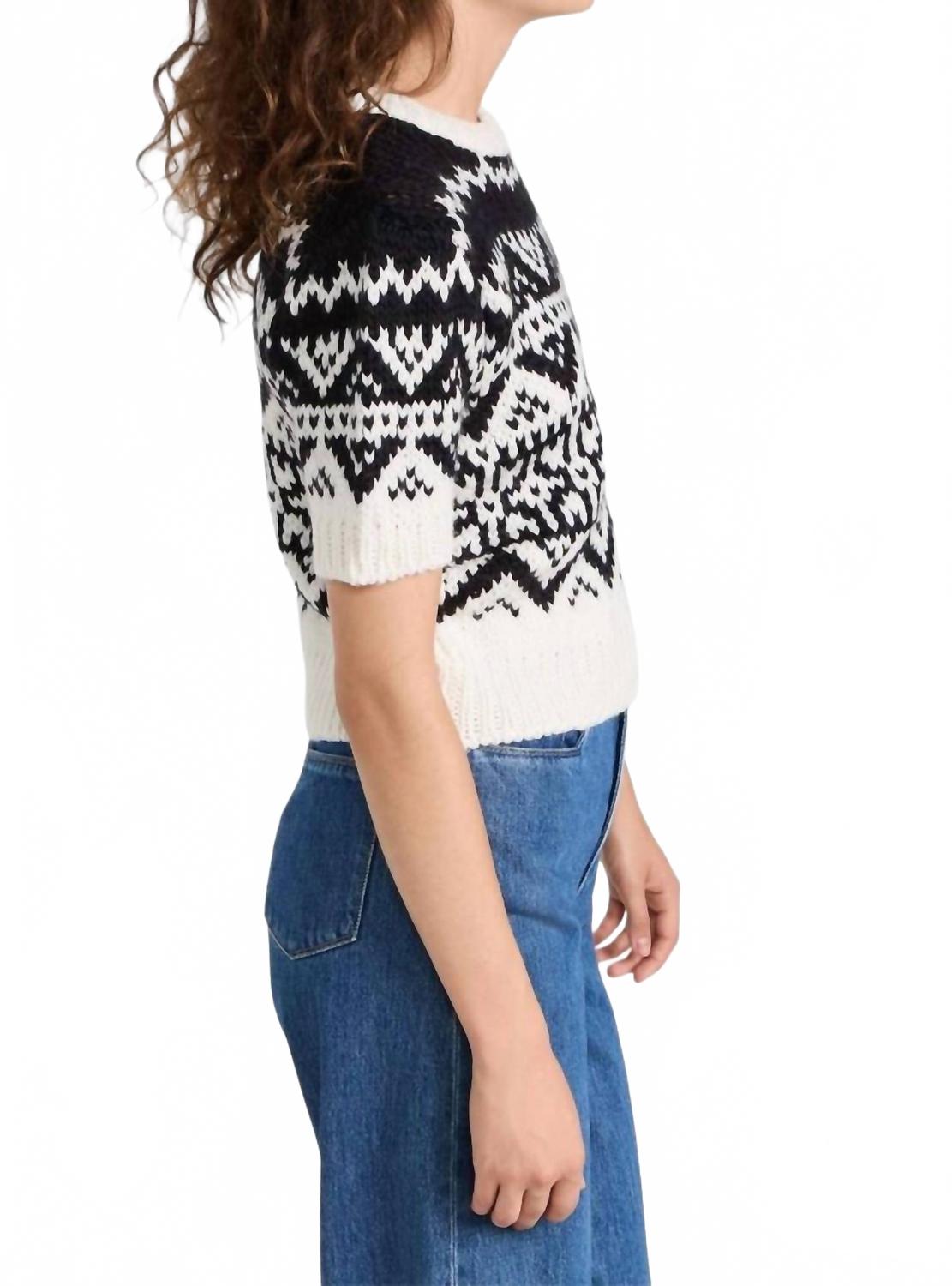 Идеальный свитер на все случаи жизни, искусно созданный для сочетания тепла и стиля. Его классический дизайн и мягкая ткань делают его незаменимым дополнением к вашему гардеробу. Представляем свитер Travis от Ramy Brook - минималистичный элемент женского гардероба с эффектным шевронным узором в черно-белых тонах. Этот свитер с короткими рукавами и классическим круглым вырезом обеспечивает стильную и удобную посадку, искусно изготовлен из шерстяной смеси, состоящей на 50% из акрила и на 50% из шерсти. Длина изделия составляет 45 см, застежка - надевается через голову, что делает его идеальным для путешествий и осеннего сезона. Изготовленный в Румынии, этот свитер средней плотности требует химчистки для оптимального ухода.