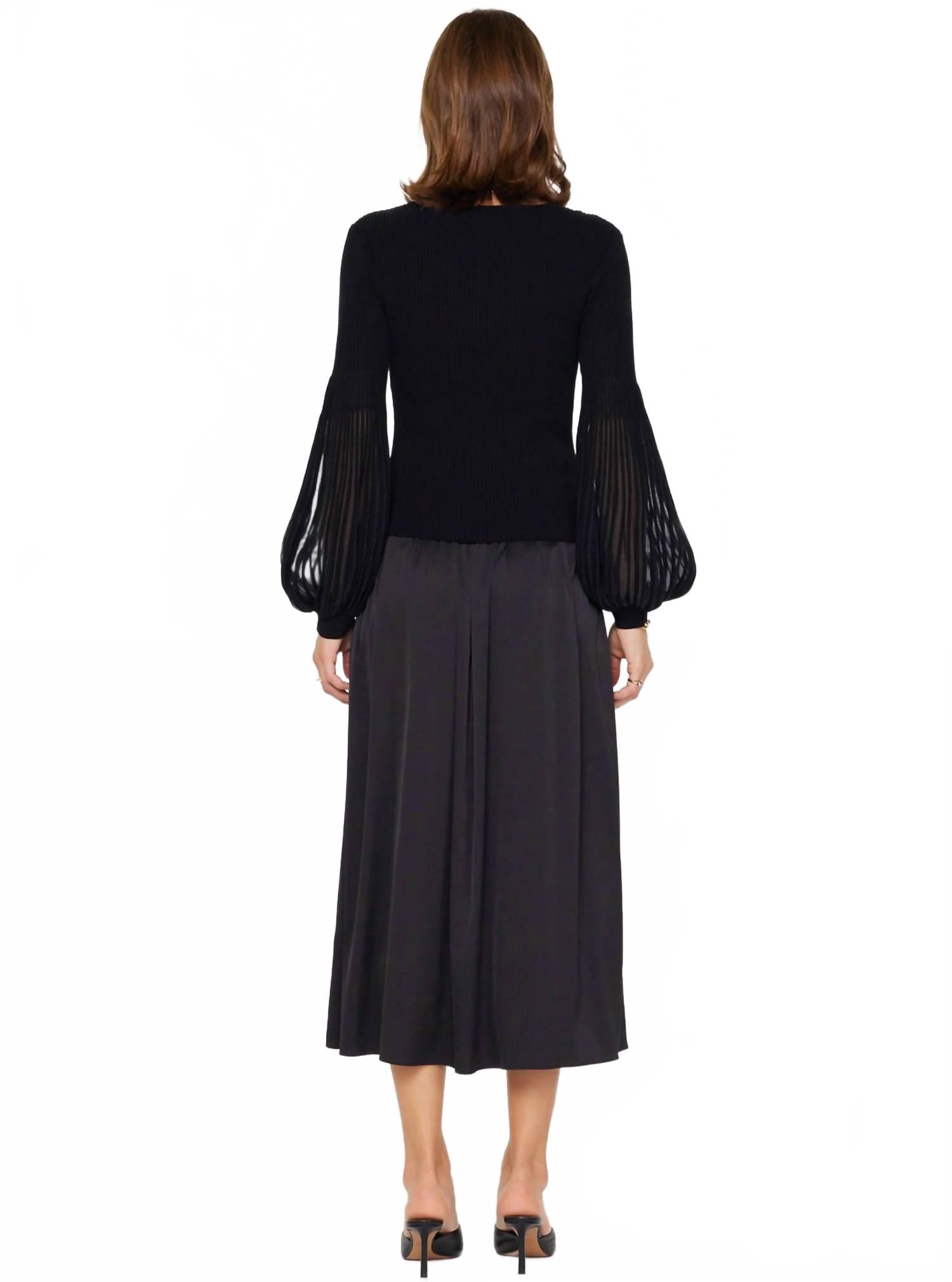 Оставайтесь в тепле и выглядите стильно в этом универсальном и невероятно модном трикотажном изделии. Носите его отдельно или в сочетании с другими вещами - это идеальный свитер для этого сезона, и вы захотите иметь его во всех цветах. Представляем комплект Molly Sweater Midi Dress Set от Current Air - шикарный ансамбль, идеально подходящий для осенних мероприятий, таких как День благодарения и праздничные вечеринки. Этот комплект включает в себя стильный свитер из вискозной смеси с длинными рукавами-«пузырями» и круглым вырезом, надетый поверх однотонного черного платья миди с очаровательными тонкими бретелями. Застежка - легко надевается. Дизайн без карманов для создания обтекаемого силуэта.