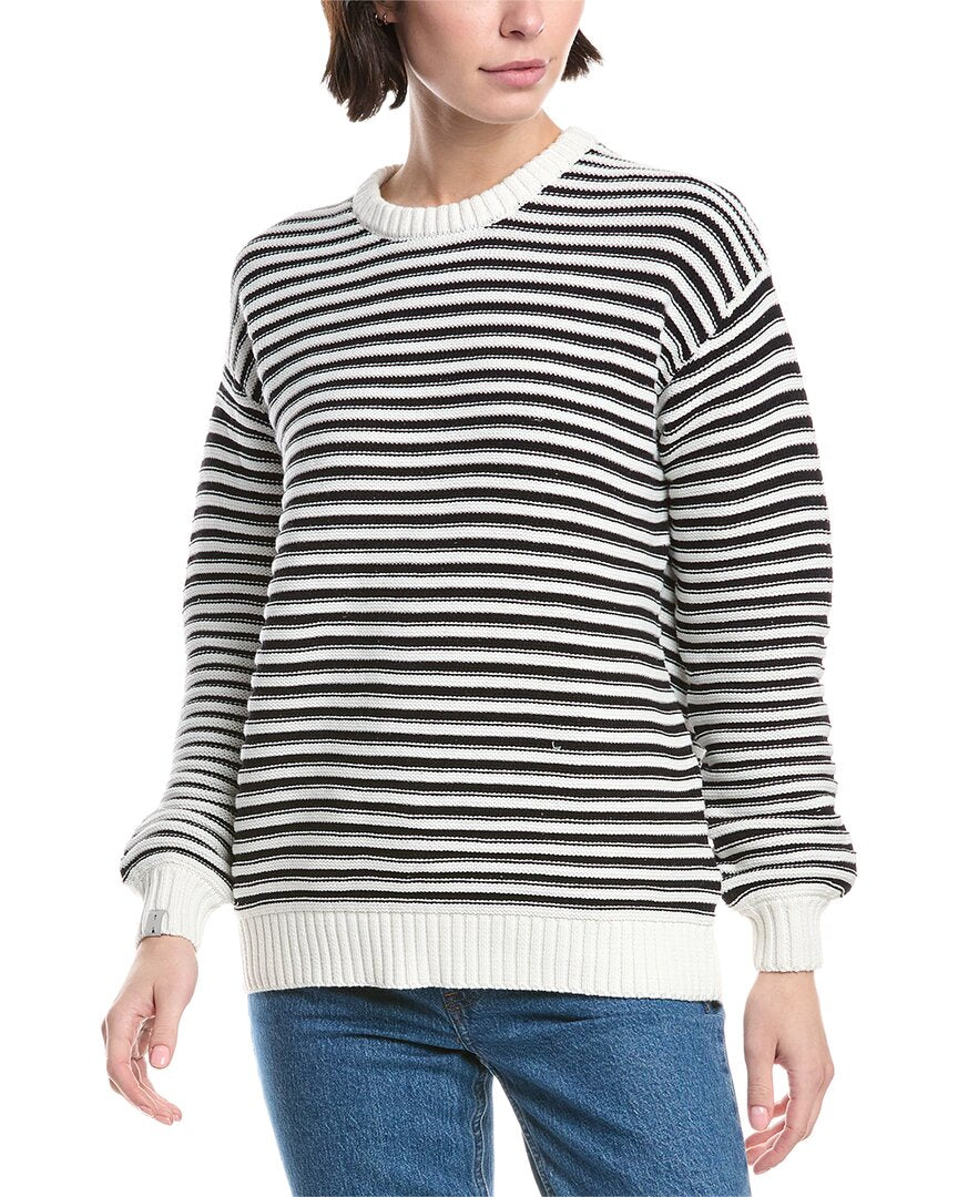 Представляем свитер THE UPSIDE Boo Knit Sweater - незаменимое дополнение к вашему гардеробу. Этот полосатый свитер длиной около 27 дюймов (68 см) от плеча до низа имеет ребристую отделку и классический круглый вырез. Изготовленный из 100% органического хлопка, этот свитер не только стильный, но и экологичный. Благодаря удобному фасону, его легко надеть для создания уютного и повседневного образа. Свитер можно стирать в машине, он импортирован и идеально подходит для повседневной носки. Доступен в различных размерах. Модель ростом 5'12' (157 см) носит размер S. Обратите внимание, что размеры могут немного отличаться в зависимости от размера. Добавьте комфорта и стиля своему образу с помощью свитера THE UPSIDE Boo Knit Sweater.