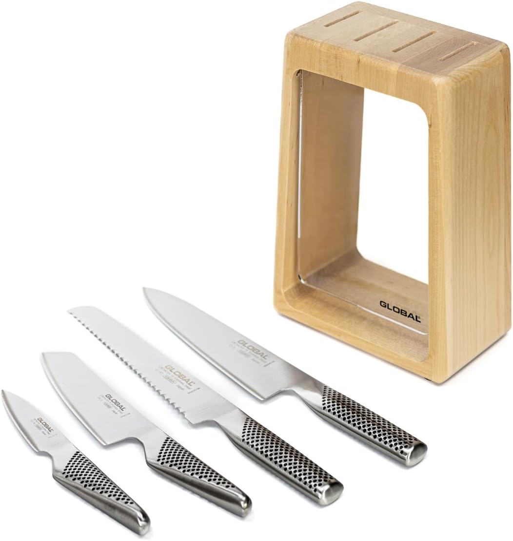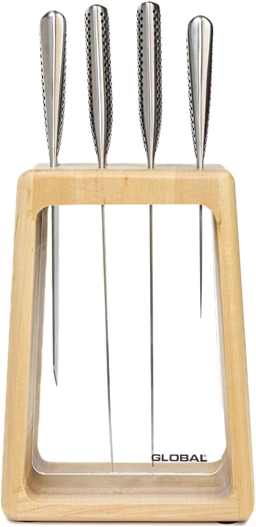 Поднимите свой кулинарный опыт на новый уровень с помощью инновационной подставки для ножей Hashira от Global, изготовленной из светлого клена и отличающейся элегантным минималистичным дизайном, который подчеркнет ваши профессиональные ножи. Это компактное решение для хранения имеет специальные слоты для четырех ножей, а его прозрачная акриловая конструкция с открытой рамой обеспечивает быстрый поиск ножей, правильную циркуляцию воздуха для предотвращения скопления влаги и легкую очистку. Идеально подходящая для современных кухонь, эта стильная подставка для ножей прекрасно сочетается с нашими знаменитыми японскими ножами из нержавеющей стали, имеющими фирменные рифленые рукоятки для превосходного захвата и точности.