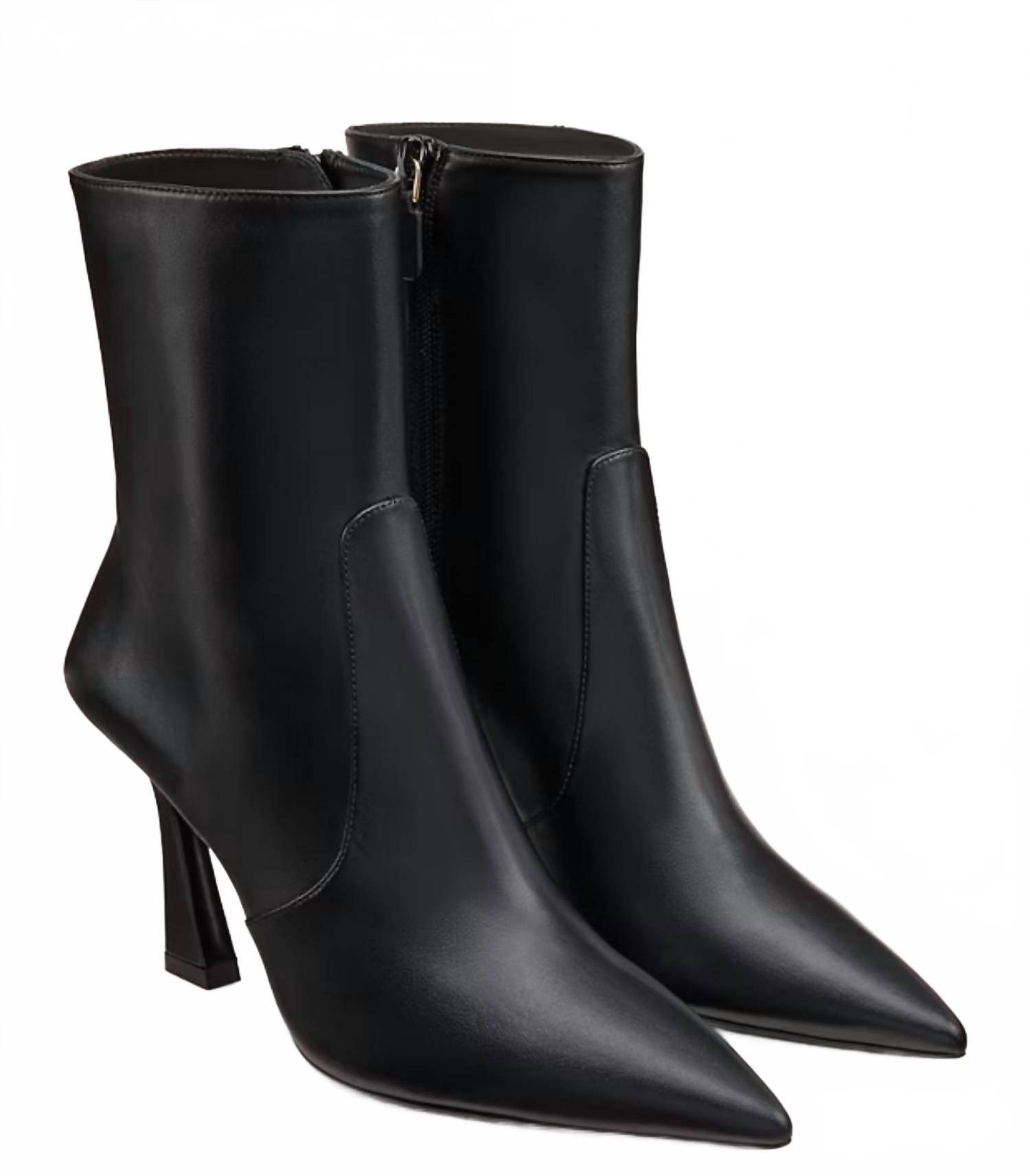 Представляем вам идеальные, самые универсальные ботинки. Высота до щиколотки позволяет легко трансформировать их из дневного образа в вечерний. Носите их с любимыми узкими джинсами и футболкой для более непринужденного образа или сочетайте с любимым мини-платьем и жакетом для вечернего выхода в город. Эти ботинки до щиколотки изготовлены из 100% телячьей кожи (верхняя часть, подкладка и подошва), имеют гладкую зернистую поверхность и заостренный носок. Они имеют боковую застежку-молнию, фирменную кожаную стельку и защитную резиновую подошву для лучшего сцепления. Высота каблука составляет 85 мм (8,5 см), хотя в зависимости от стандартов измерения она может быть обозначена как 90 мм.