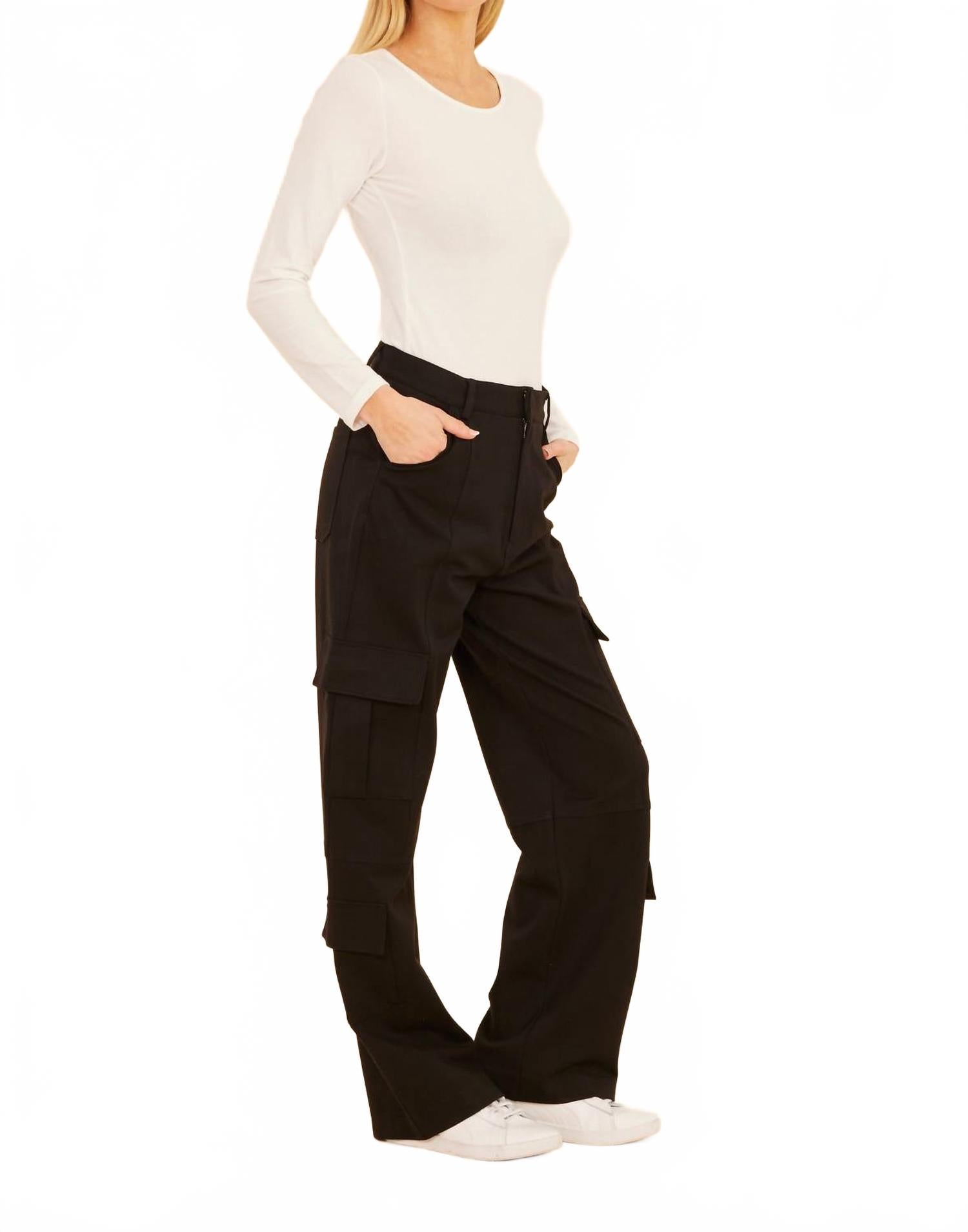 Подчеркните свой стиль с помощью брюк-карго из трикотажа понте от Dolce Cabo, созданных для того, чтобы органично сочетать комфорт и изысканность. Эти черные брюки с широкими штанинами имеют свободный крой, высокую посадку на талии и застежку на крючок и петлю, идеально подходящие для повседневных выходов. Изготовлены из плотного трикотажа понте и оснащены практичными накладными карманами для дополнительной функциональности. Уход: только химчистка.