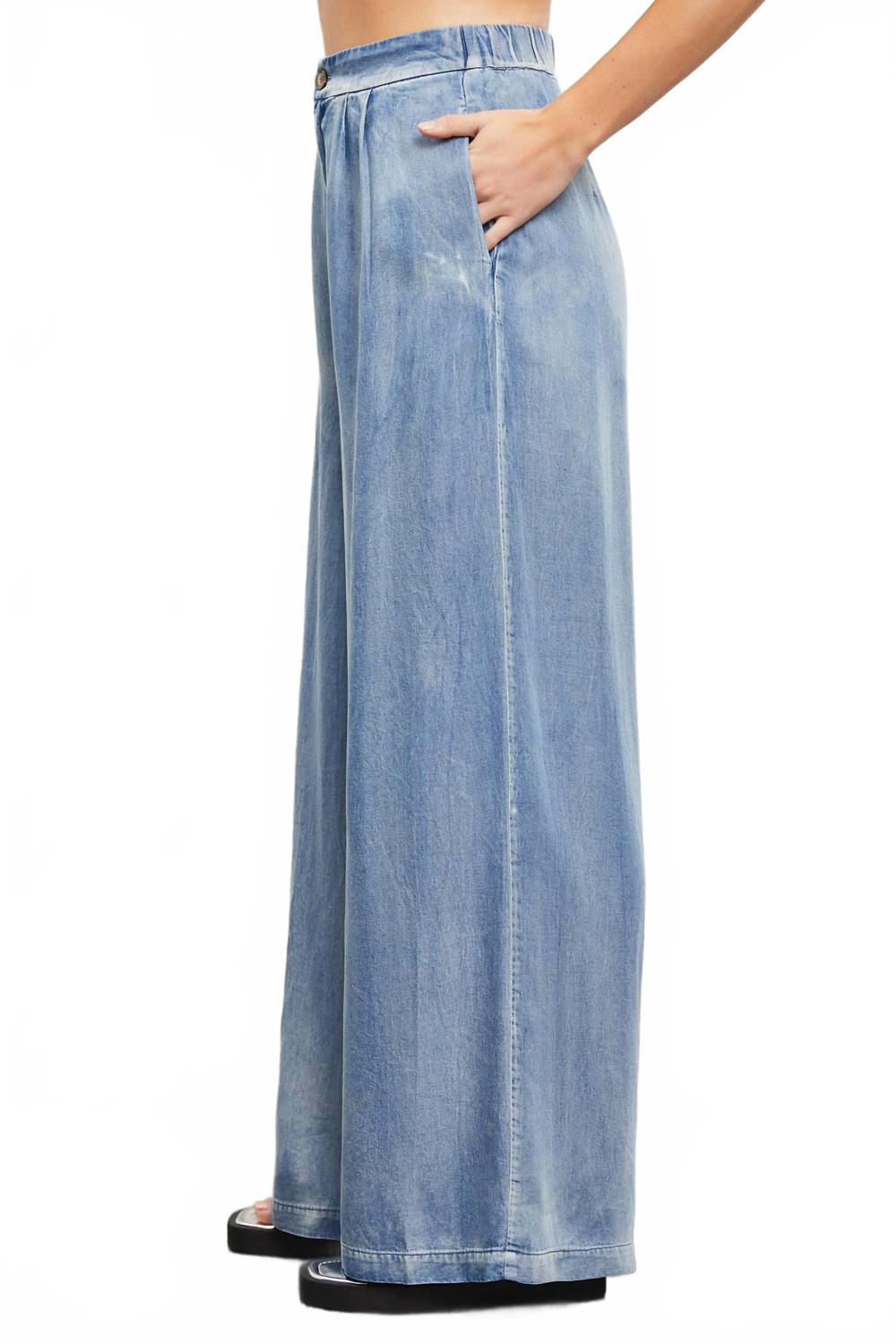 Откройте для себя брюки On Cloud 9 от Mustard Seed - идеальное сочетание комфорта и стиля для вашего весеннего гардероба. Эти джинсы с высокой талией отличаются свободным кроем и широкими штанинами, дополненными эластичным поясом сзади для удобства и застежкой на пуговицу для надежности. Светлый оттенок подчеркивает их стильный уличный дизайн, а складки спереди и функциональные карманы добавляют модный штрих. Однотонная ткань делает их универсальным выбором для отдыха или повседневных прогулок.