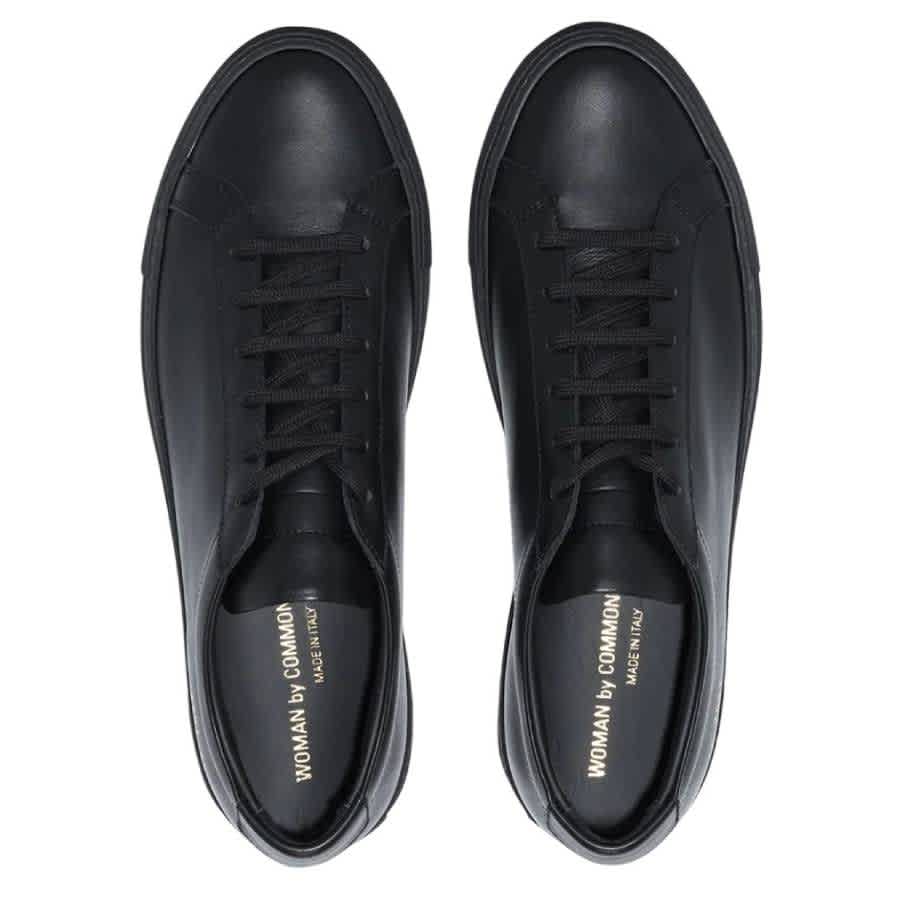 Женские кроссовки Common Projects. Цвет - черный. Оригинальные низкие кроссовки Common Projects Achilles. Эти кроссовки имеют шнуровку, низкий силуэт, прошитые вставки, тиснение, круглый носок, резиновую подошву и кожаную подкладку. 100% кожа. Сделано в Италии.