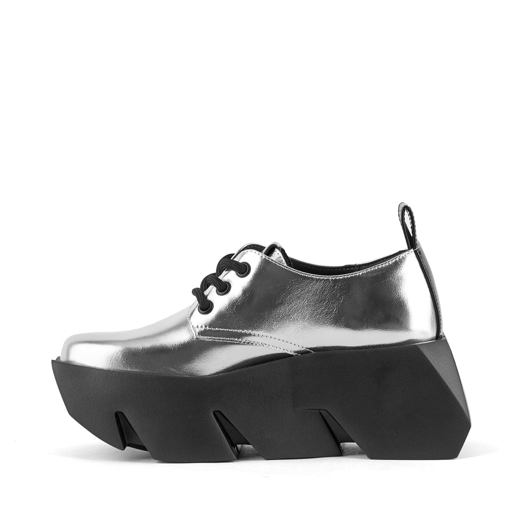 Модель Bull Derby - это игривая интерпретация классических дерби на шнуровке, отличающаяся элегантным верхом из лакированной кожи. Классический крой контрастирует с объемной, бруталистской подошвой, украшенной культовым логотипом United Nude. Стандартная посадка. Высота каблука - 85 мм/3,3 дюйма. Верх из лакированной кожи или кожи наппа с металлизированной фольгой. Кожаная подкладка. Подошва из резины EPR.