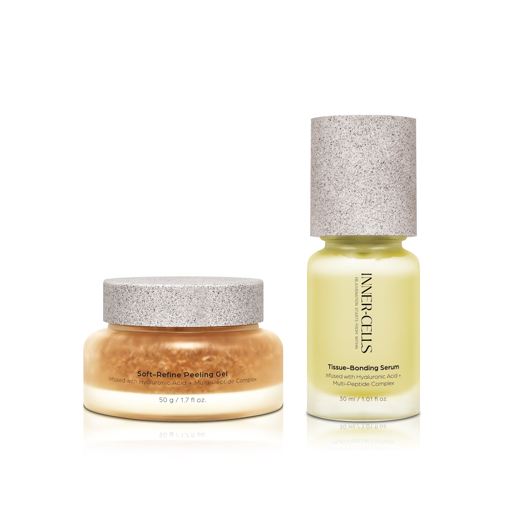 Представляем набор Inner Cells Complete Texture & Surface Duo для вашего роскошного ухода за кожей. Этот высокоэффективный набор разработан для создания идеальной основы для здоровой, сияющей кожи. Двухэтапный ритуал гарантирует тщательное обновление кожи, глубокое воздействие и оптимальную подготовку для максимального впитывания последующих антивозрастных средств.