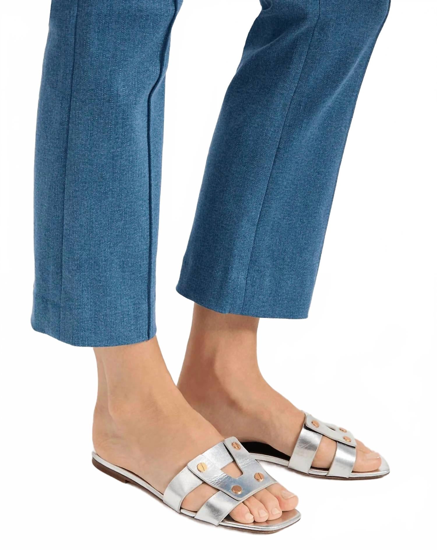 Классически милые и удобные на весь день. Мы в восторге от этих сандалий. Представляем сандалии Via Slide от Veronica Beard - идеальное сочетание элегантности и комфорта в сияющей серебристой металлической коже. Благодаря открытому носку и минималистичному дизайну с множеством ремешков, украшенных золотой фурнитурой, эти сандалии идеально подойдут для стильной летней прогулки. Плоский каблук обеспечит комфорт как в летние выходные, так и на стильные встречи в День матери. Уход: хранить в прохладном сухом месте в пылезащитном мешке и чистить под наблюдением специалиста.