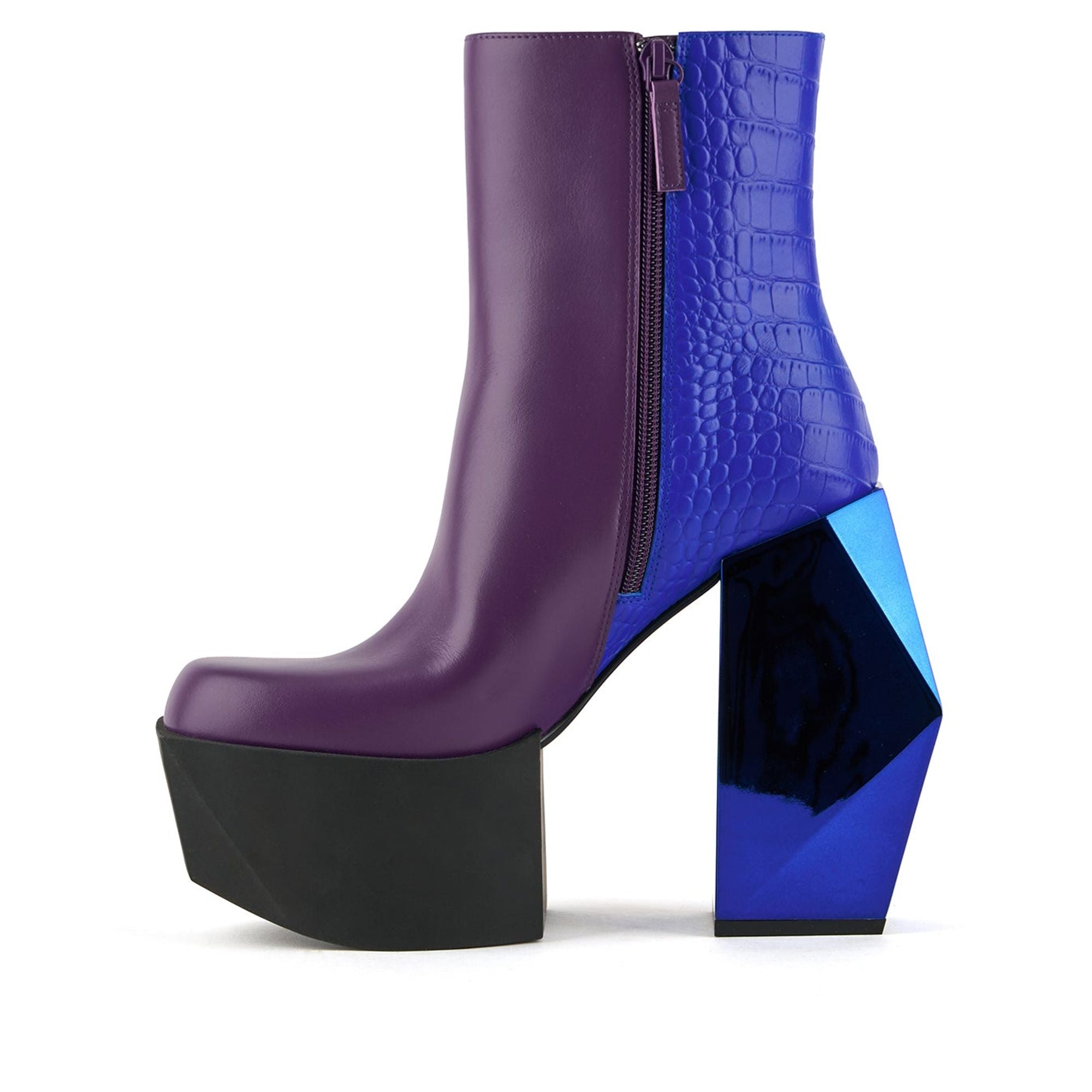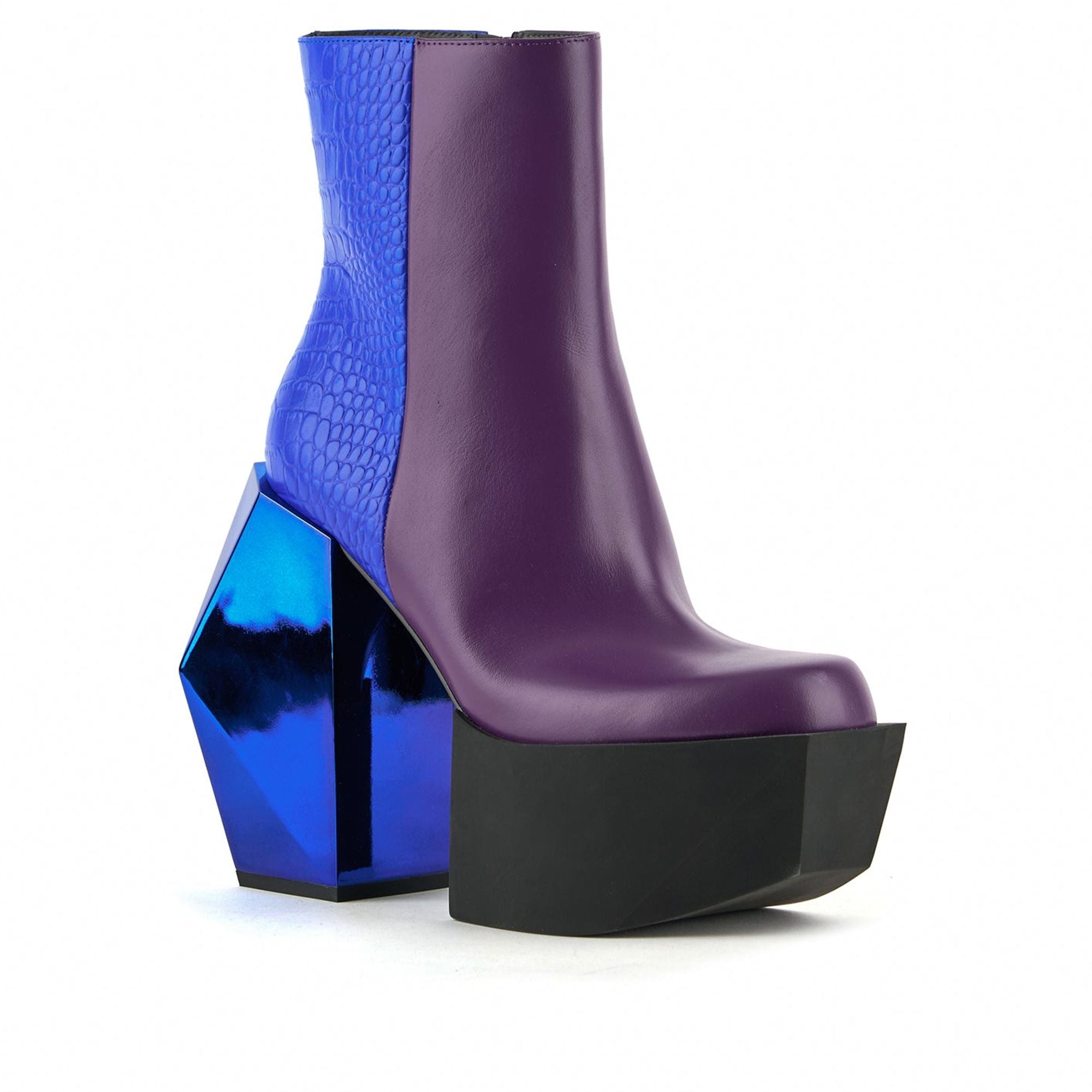 Ботинки Stage Boot - это ультравысокие ботинки на платформе с эффектным геометрическим блочным каблуком. Используя фирменный дизайн United Nude «Lo Res» - процесс постепенного снижения трехмерного разрешения объекта для создания фрагментированных, абстрактных форм - ботинки Stage Boot предлагают поразительное сочетание авангардной эстетики, высокой моды и неоспоримой эффектности. Стандартная посадка. Высота каблука - 150 мм/5,9 дюйма. Верх из кожи наппа и тисненой кожи. Кожаная подкладка. Каблук с сатиновой или хромированной отделкой. Резиновая подошва.