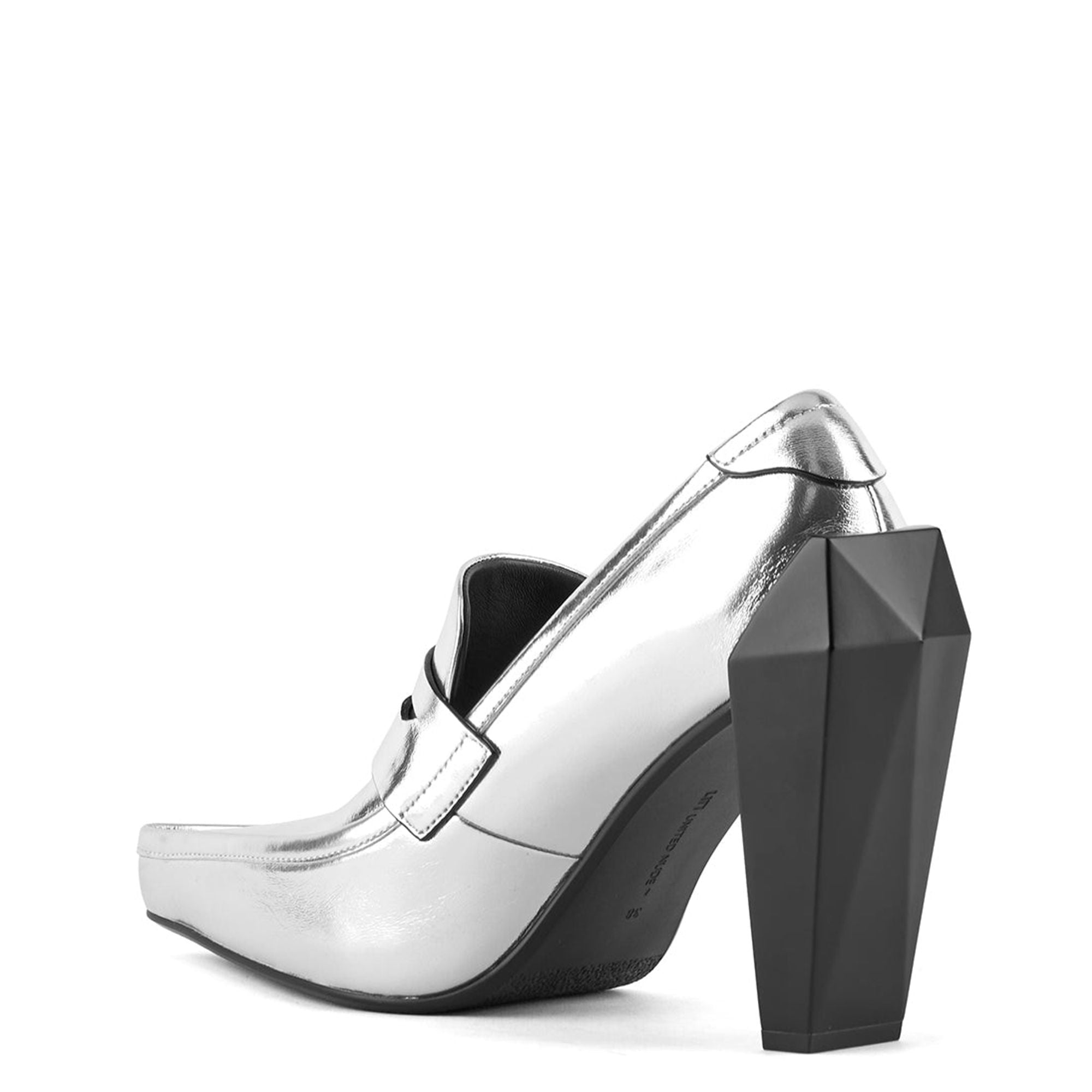Модель Gem Loafer Hi сочетает в себе классическую изысканность и современный дизайн, отличаясь элегантным верхом в виде лоферов, дополненным выразительным геометрическим каблуком в форме драгоценного камня. Эти гибридные туфли сочетают в себе вневременной стиль и современную изюминку, идеально подходящие для тех, кто ищет утонченную элегантность с футуристическим оттенком. Стандартная посадка. Высота каблука - 105 мм/4,1 дюйма. Верх из замши, кожи или кожи наппа с металлизированной отделкой. Кожаная подкладка. Каблук с сатинированной или хромированной отделкой. Резиновая подошва.