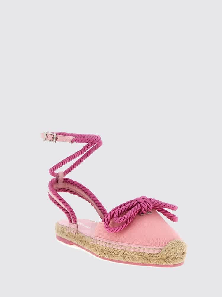 Эспадрильи Mach & Mach для женщин. Цвет - розовый. Эспадрильи Mach Mach Double Bow Riviera. Эспадрильи Riviera сочетают в себе канвас, кожу и детали из плетеного атласа, создавая шикарный, фактурный образ. Они имеют регулируемый двойной ремешок на щиколотке, веревочную подошву и резиновую подошву, украшены изящным бантом и удобным плоским каблуком. Сделано в Италии.