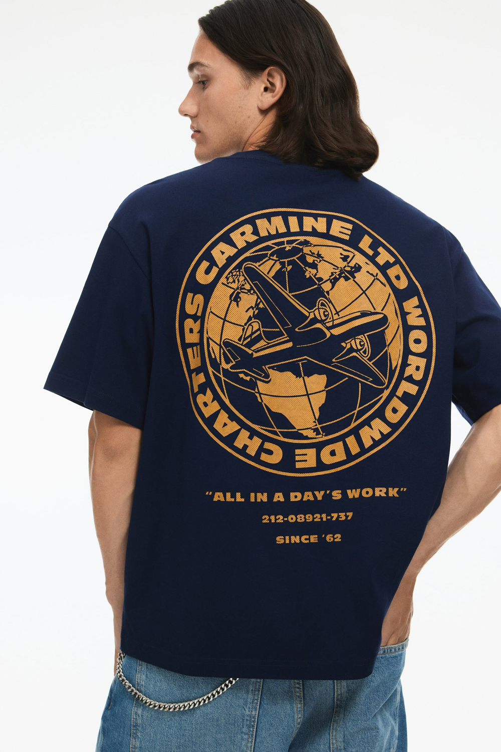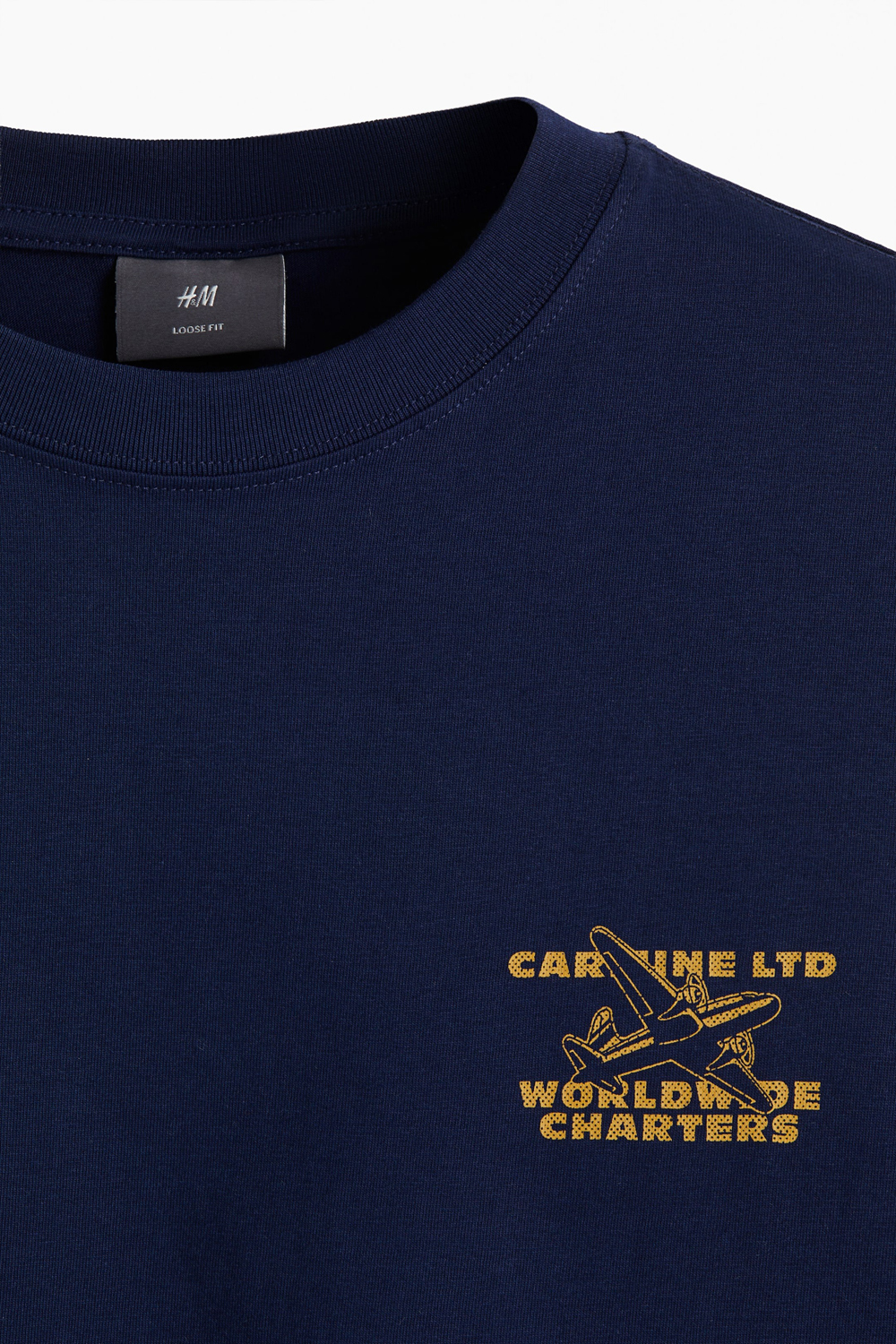 Футболка из хлопкового джерси средней плотности с принтом. Круглый воротник с резинкой, заниженная линия плеча, прямой подол. Свободный, но не слишком объемный крой.