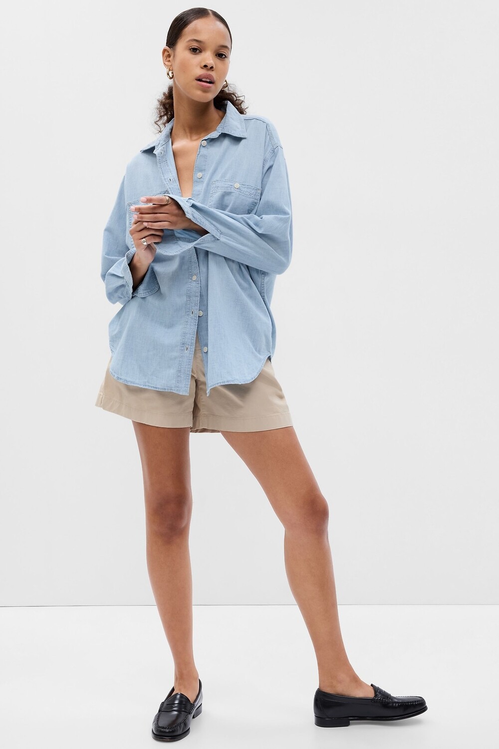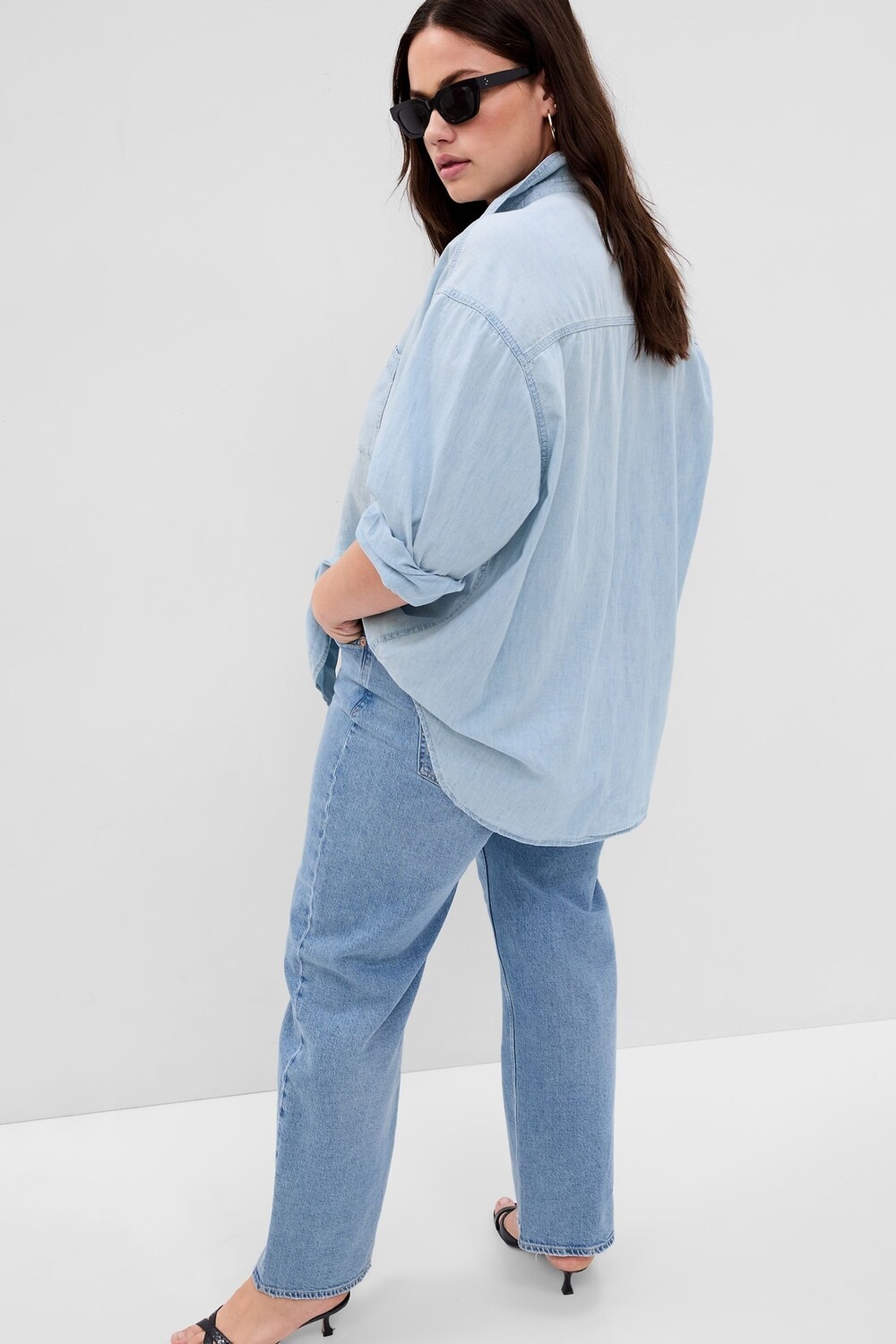 Джинсовая рубашка оверсайз с длинными рукавами из ткани шамбре Gap, синий