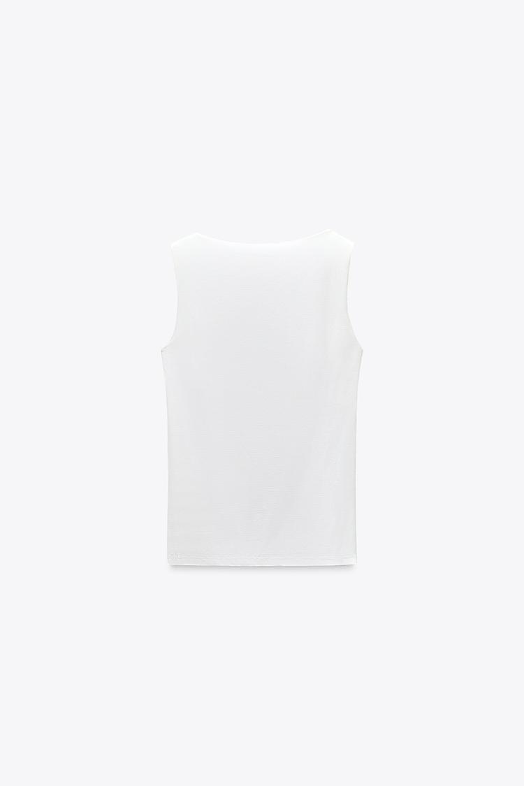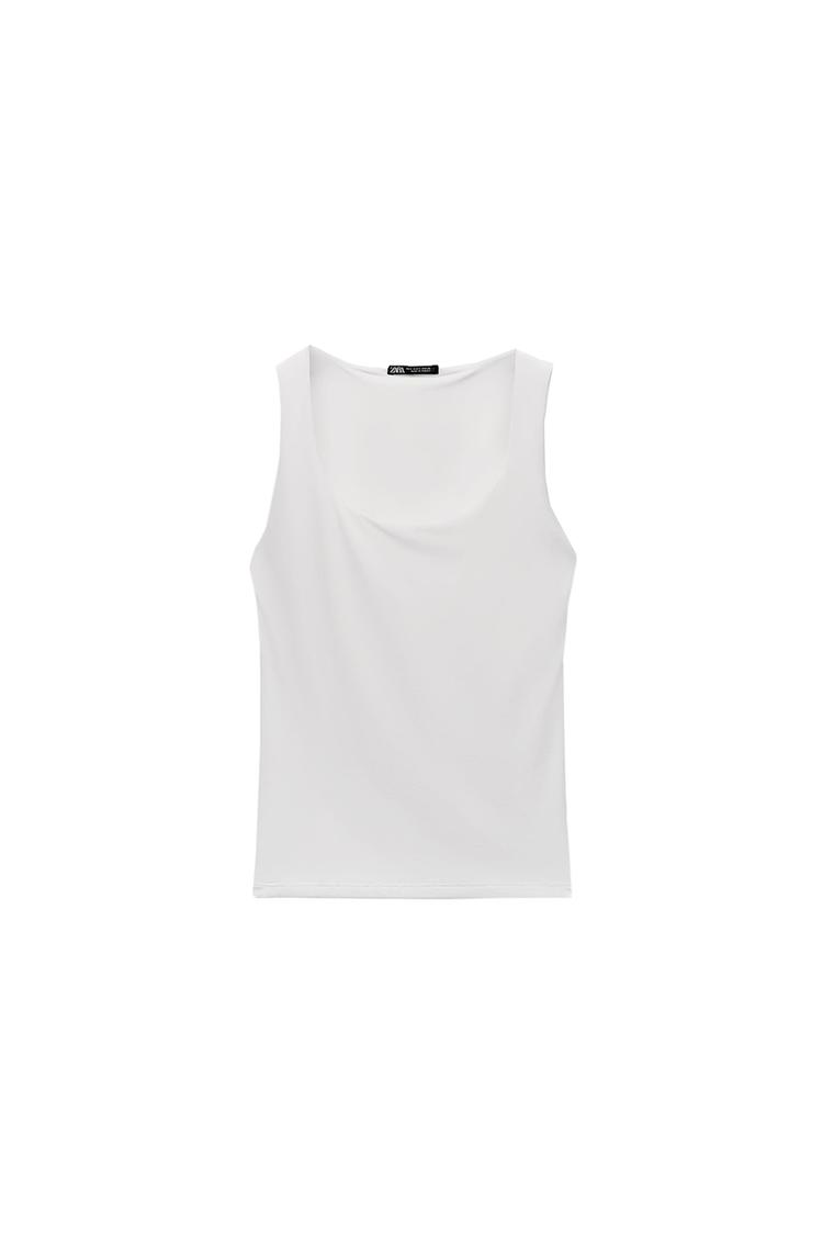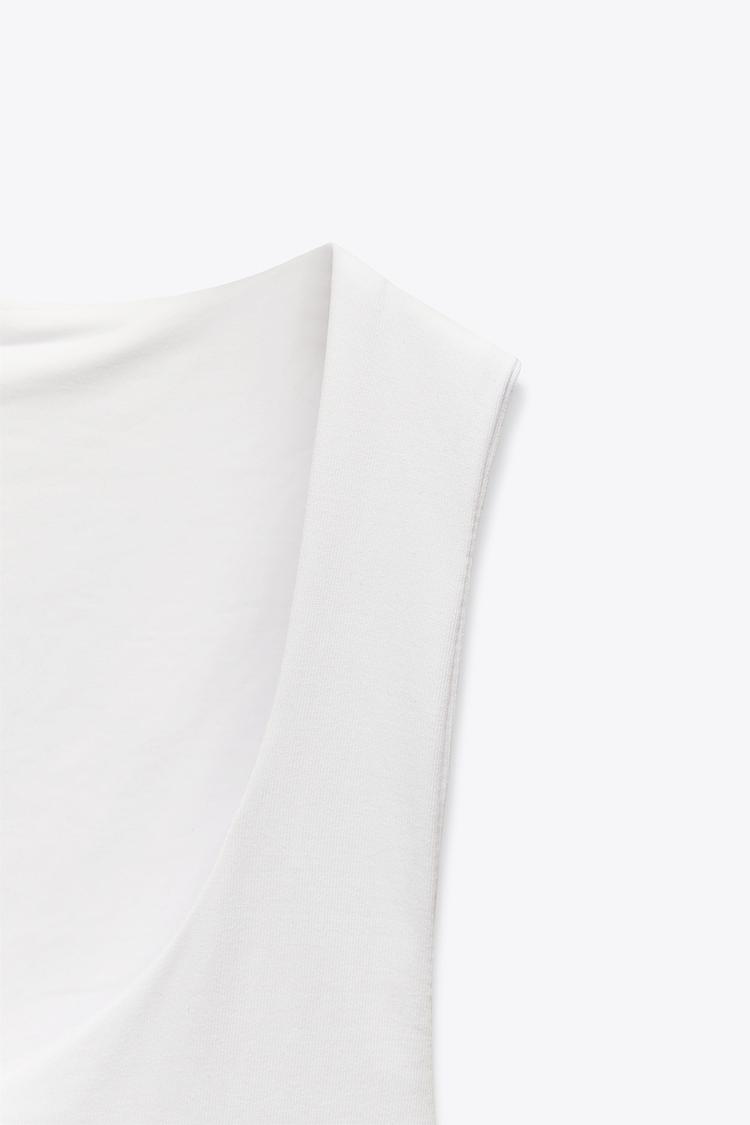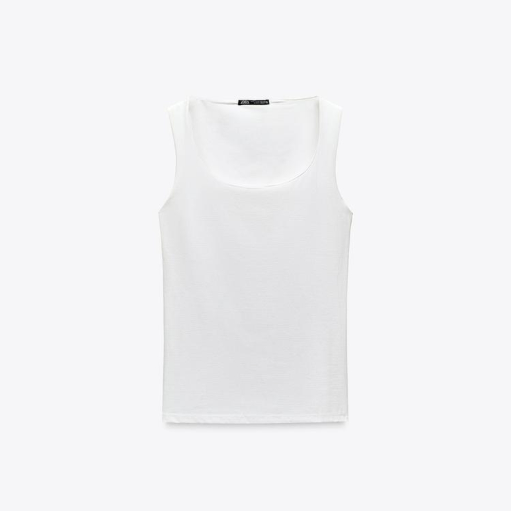 Приталенная футболка из смесовой ткани с полиамидом. Широкие бретели. Усиление на груди с внутренней стороны. Прямой подол.
