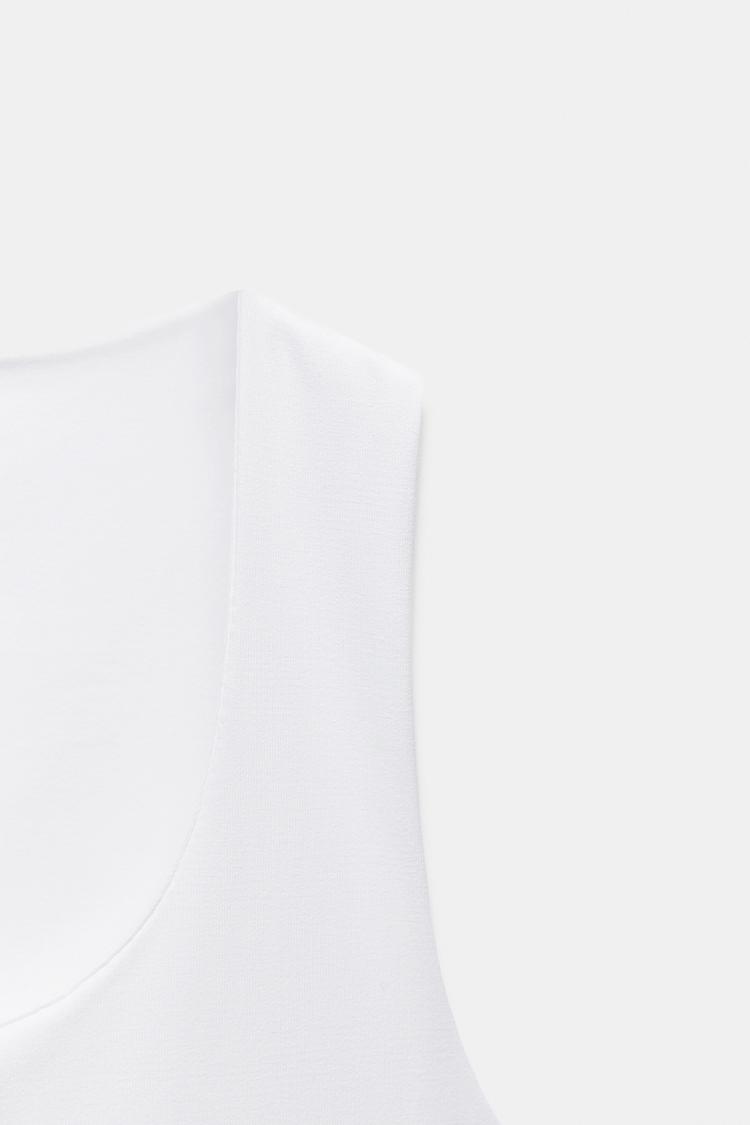 Приталенная футболка из смесовой ткани с полиамидом. Широкие бретели. Усиление на груди с внутренней стороны. Прямой подол.