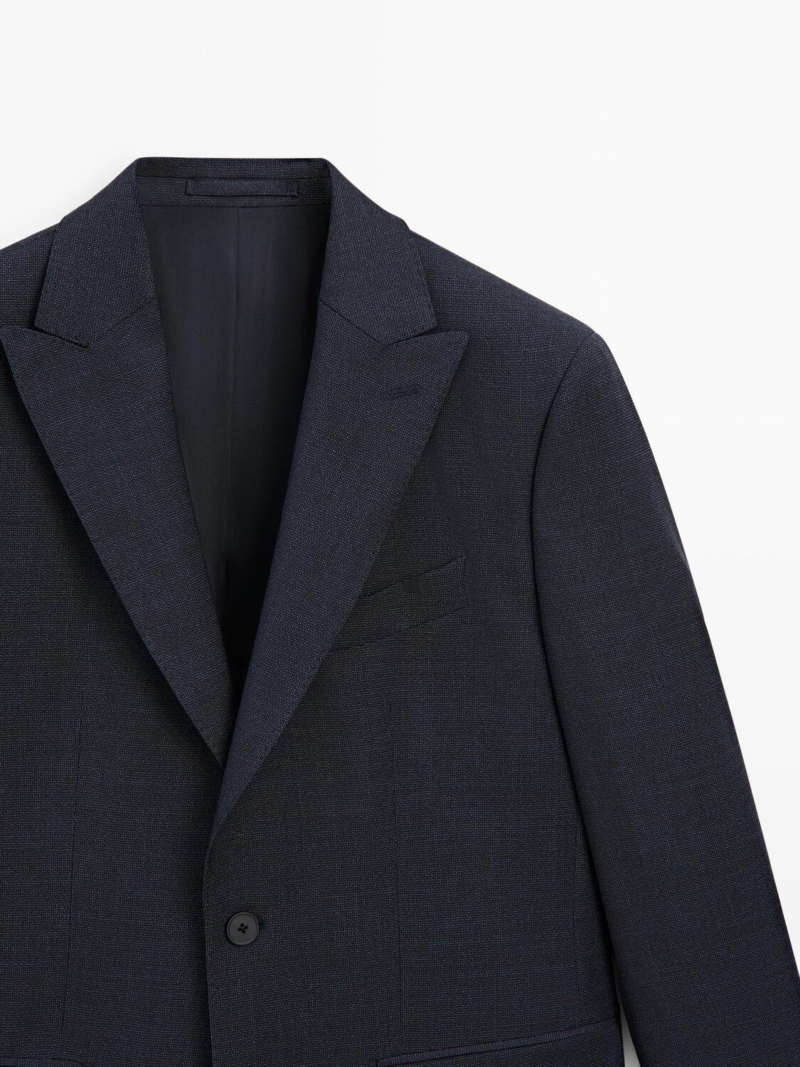 Шерстяной костюмный блейзер Massimo Dutti, indigo