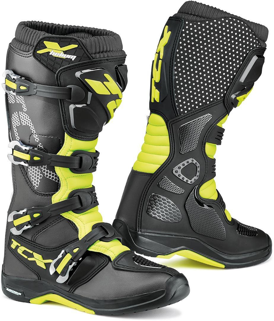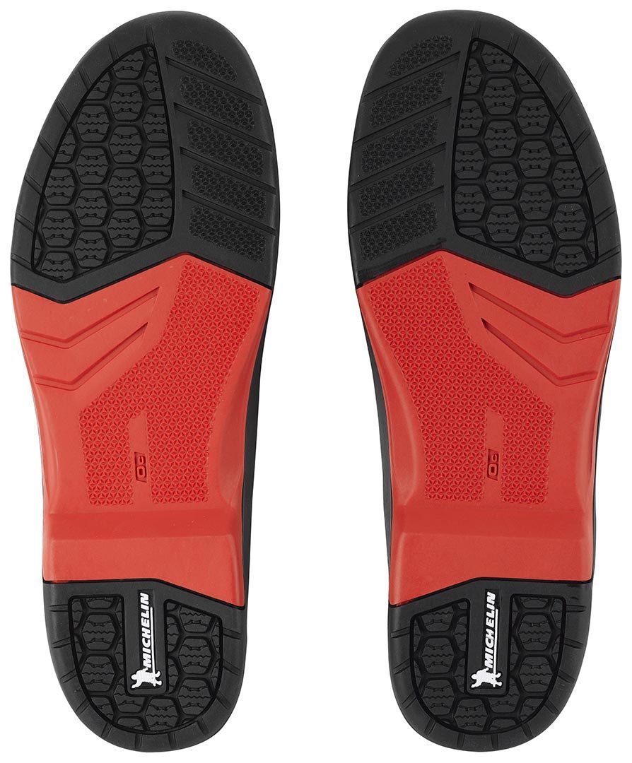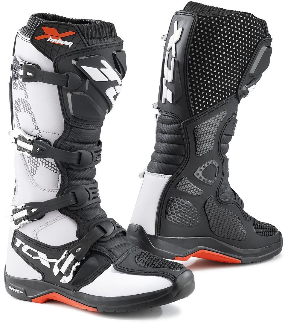 Новые внедорожные ботинки X-Helium Michelin от TCX впечатляют превосходной защитой и уникальным комфортом. Мягкая подкладка спереди и сзади ботинка гарантирует оптимальный комфорт, а теплоотталкивающая полиуретановая защита голени с внутренней стороны ботинка обеспечивает лучшее сцепление с мотоциклом. Ботинки X-Helium Michelin также оснащены подошвой Michelin MX Hybrid, особая конструкция которой обеспечивает максимальное сцепление, идеальную фиксацию и оптимальную устойчивость.
