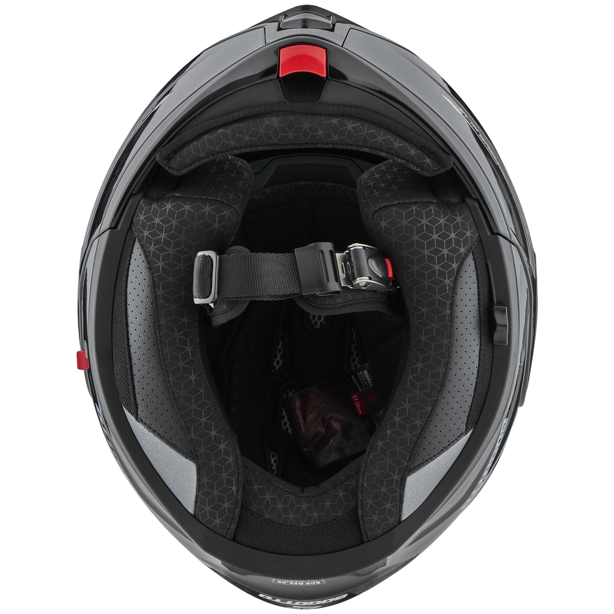 Шлем Bogotto FS-X600 с откидной крышкой сочетает в себе комфорт, функциональность и защиту в современном дизайне. Прочный корпус из ABS-пластика в сочетании с многослойной пеной EPS обеспечивает превосходное поглощение ударов. Шлем оснащен прозрачным визором, подготовленным для установки Pinlock, и встроенным солнцезащитным козырьком, обеспечивающим оптимальную видимость в различных условиях освещения. Эффективная система вентиляции с воздухозаборниками на подбородке и верхней части, а также задними вентиляционными отверстиями обеспечивает комфортный микроклимат внутри шлема. Усиленный подбородочный ремень с храповым механизмом гарантирует надежную фиксацию. Кроме того, съемная и моющаяся внутренняя подкладка повышает гигиеничность и комфорт. Шлем можно поднять одной рукой, он оснащен Bluetooth, что позволяет легко интегрировать системы связи.
