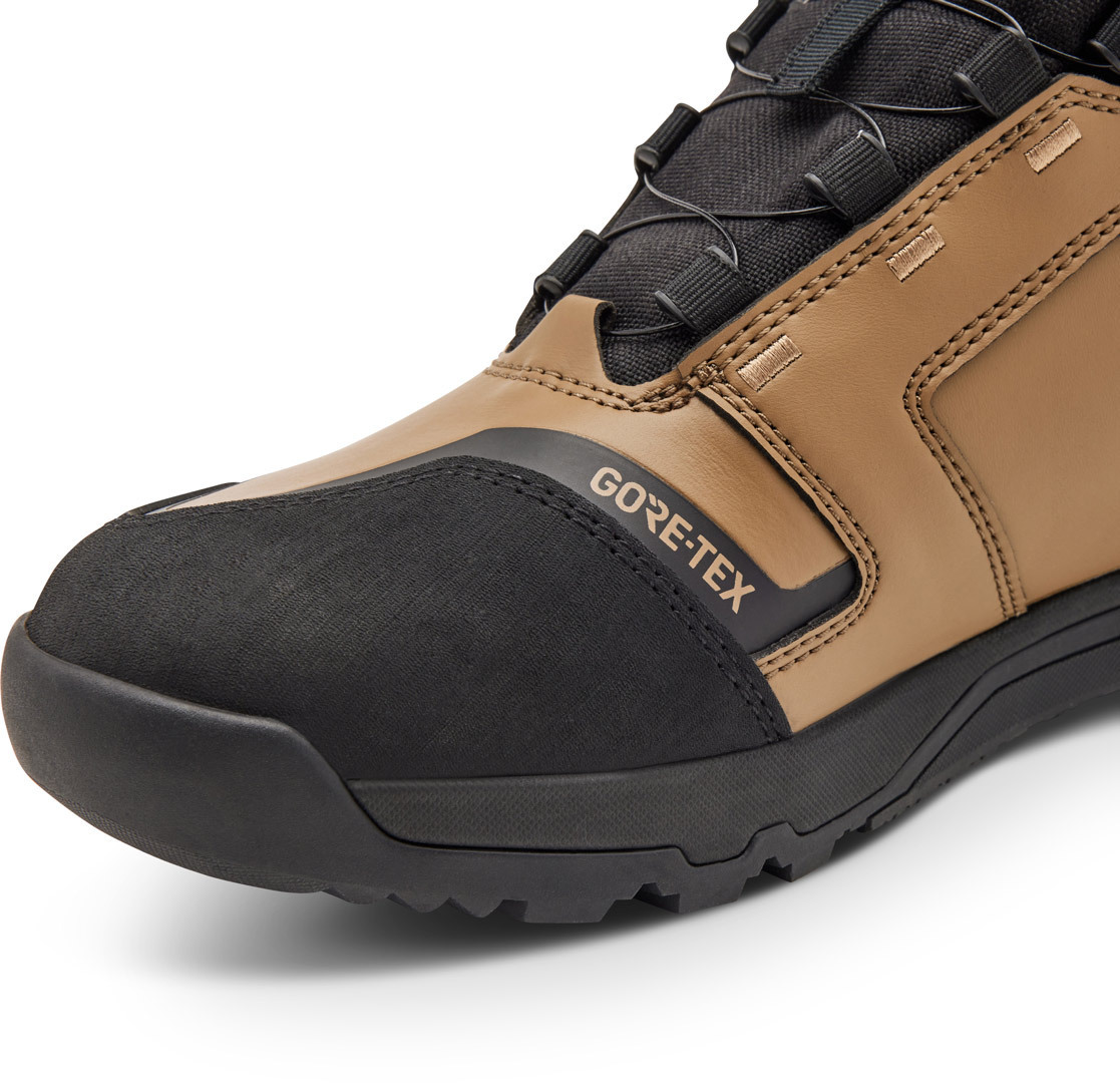 Нет ничего лучше ощущения настоящего приключения на бездорожье, и ботинки Defend ADV усиливают это ощущение, обеспечивая максимальный комфорт, долговечность и устойчивость как на мотоцикле, так и вне его. Созданные для работы на бездорожье, они разработаны с учетом удобства ходьбы и обеспечивают комфортную и плотную посадку благодаря регулировке BOA. Верх из материала GORE-TEX обеспечивает воздухопроницаемость и водостойкость, а амортизирующая пена D3O в язычке и области лодыжки защищает от неожиданных ударов на трассе.