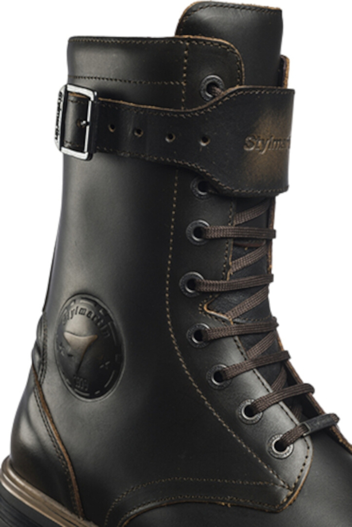 Rocket - это водонепроницаемые мотоциклетные ботинки в стиле милитари от Stylmartin с винтажным дизайном, идеальное сочетание качества, безопасности и стиля. Водонепроницаемая и дышащая подкладка, формованные полиуретановые защитные элементы, кожаная защита экипировки, шнуровка и застежка-молния делают Rocket частью основной линейки Stylmartin.