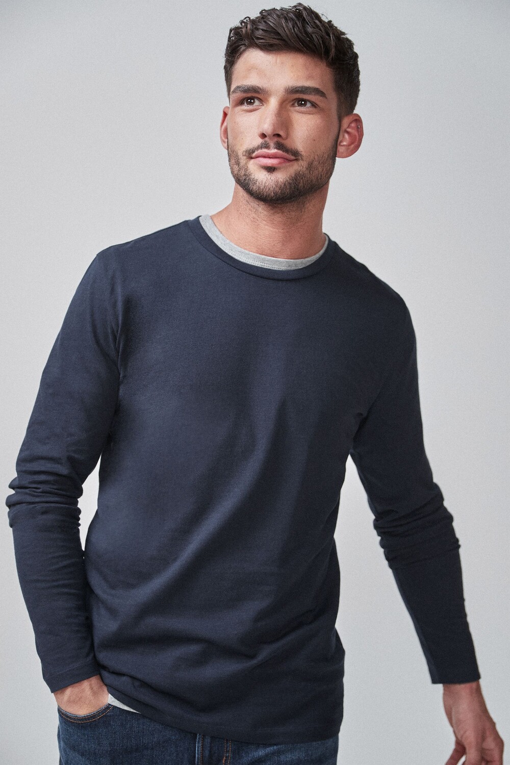 Футболка с длинными рукавами и круглым вырезом Next, синий 3 526₽