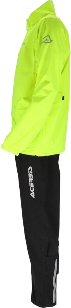 Компактный, высокоэффективный дождевой комплект премиум-класса обеспечивает оптимальную защиту благодаря водонепроницаемости 10 000 мм и воздухопроницаемости 5000 г. Все швы герметизированы для предотвращения проникновения воды. Куртка имеет водонепроницаемый боковой карман и регулируется по манжетам, рукавам, талии и низу. Желтый материал для высокой видимости. Брюки имеют ромбовидную вставку в области промежности и термостойкие вставки на штанинах. Светоотражающие логотипы и аппликации Acerbis повышают видимость. Комплект оснащен практичными карманами для хранения вещей - идеально подходит для тех, кто ценит функциональность и безопасность в любую погоду.