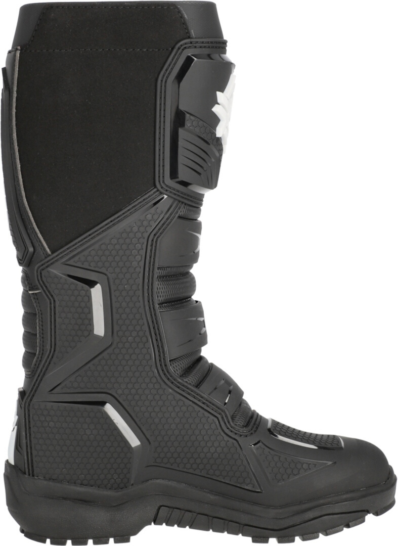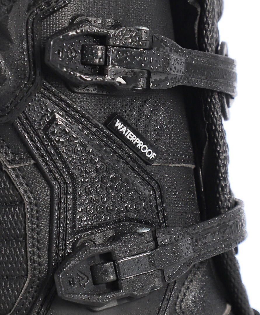 Эти защитные, полностью закрытые мотокроссовые ботинки имеют легкую водонепроницаемую подкладку, которая сохраняет ноги сухими в любых условиях. Верхняя часть устойчива к порезам и истиранию, а эластомерная защита пятки обеспечивает дополнительный комфорт и амортизацию. Вставки из ТПУ с дифференцированной структурой в области голени, лодыжки и экипировки обеспечивают максимальную защиту. Ботинок можно индивидуально и микрометрически регулировать с помощью четырех крючков и пряжек, а дополнительная замшевая термозащита обеспечивает дополнительный комфорт. Мягкие микрофибровые накладки на голени защищают от порезов и ссадин, а устойчивые к порезам защитные накладки из ТПУ обеспечивают надежный хват.