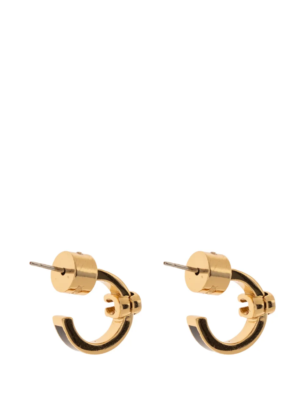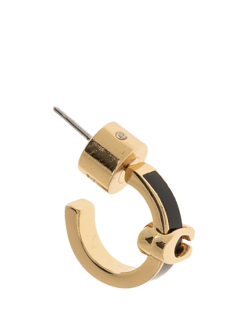 Золотая серьга-кольцо с черной эмалью и застежкой в виде штифта