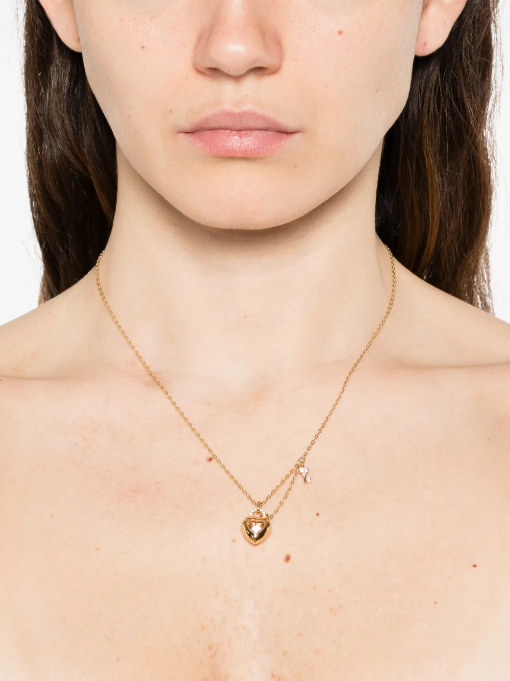 Подробнее о товаре: - золотистый - розовый камень - подвеска в форме сердца - подвеска в форме ключа - разрезы - застежка-лобстер - Повседневное использование и воздействие внешних факторов могут уменьшить блеск драгоценных камней и поверхностей, покрытых золотом.