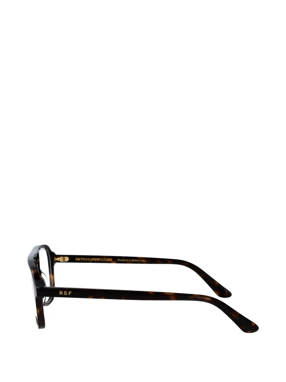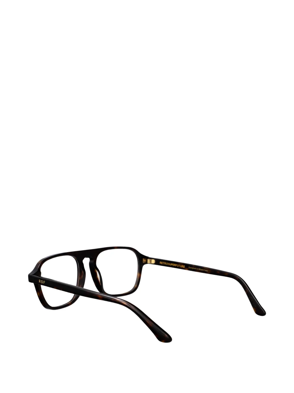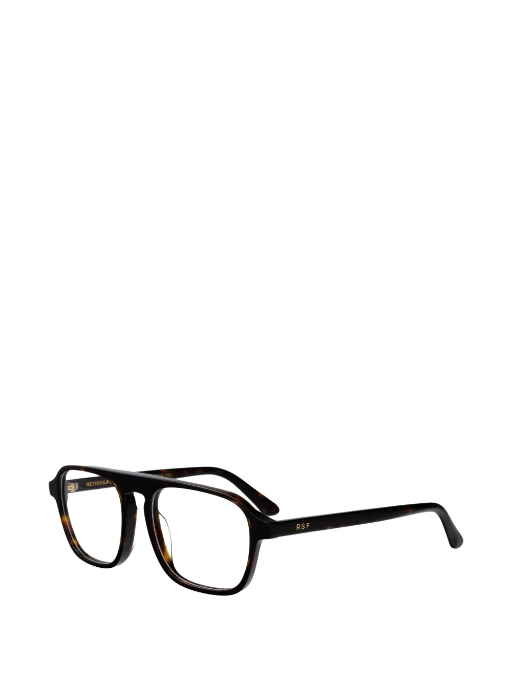 Коричневая оправа квадратной формы, брендинг сбоку, надпись r.s.f сбоку, носоупоры, закругленные уголки. Эти очки поставляются с защитным футляром. Все очки продаются без корректирующих линз (без диоптрий).