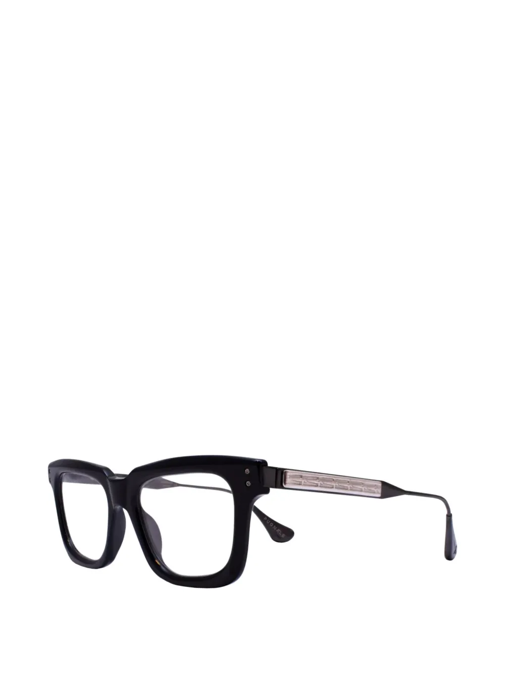 Черная оправа квадратной формы, носовые упоры. Эти очки поставляются с защитным футляром. Все очки продаются без корректирующих линз.