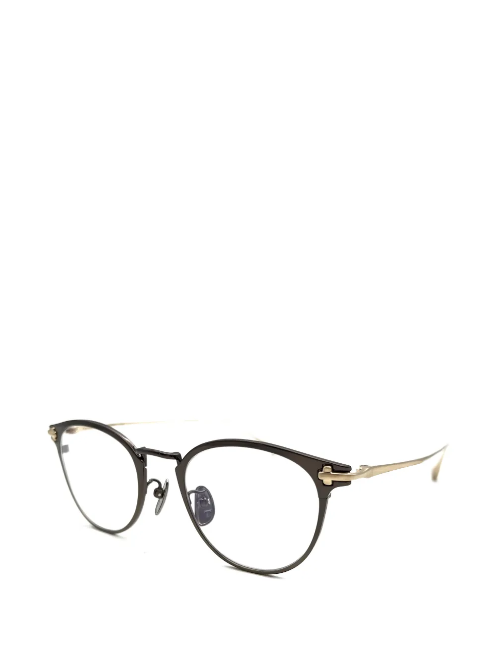 Коричневая оправа круглой формы с золотистыми дужками и носоупорами В комплекте - защитный футляр. Все очки продаются без корректирующих линз.
